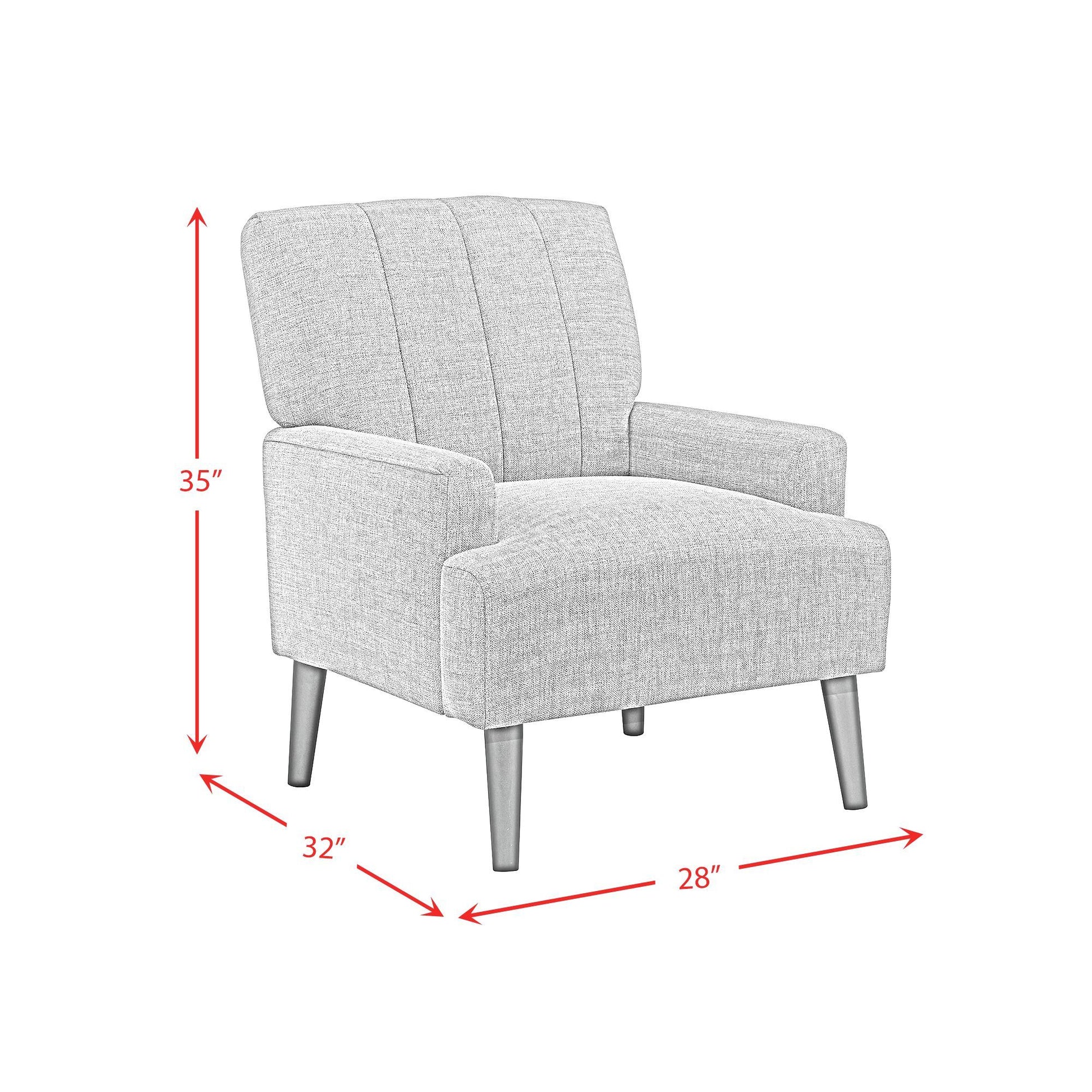 The Kiwi Accent Chair makes the perfect addition to any modern living space while featuring channel tufting that adds depth and dimension to the design. The welt arm edges add a touch of sophistication and elegance, while the wooden legs bring a natural element to the overall aesthetic. With a steel spring seat, the Kiwi chair offers optimal support and durability. Upgrade your home seat décor with the Kiwi Accent Chair and experience both style and comfort in one stunning piece.