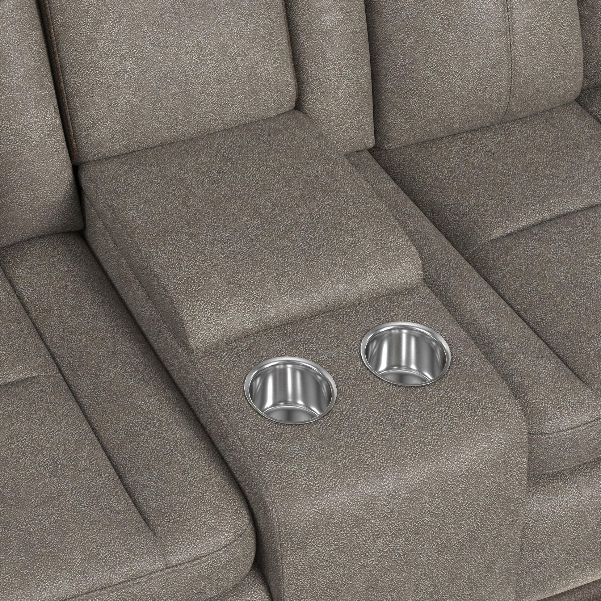 Lantana - Power Motion Loveseat With Power Headrest, LED, And Console - Rocky Gray/Brown