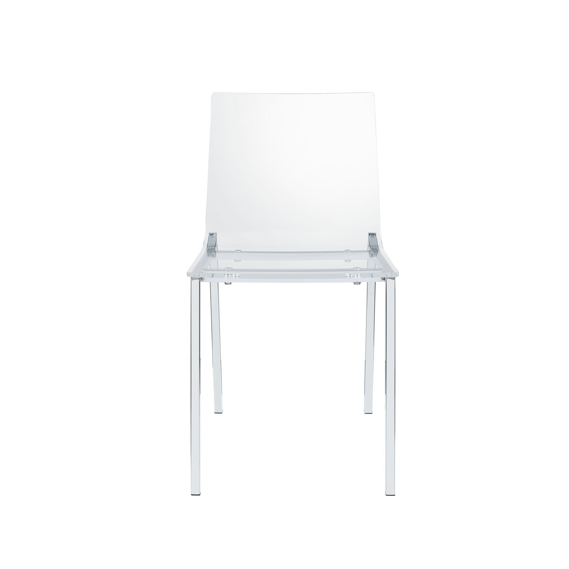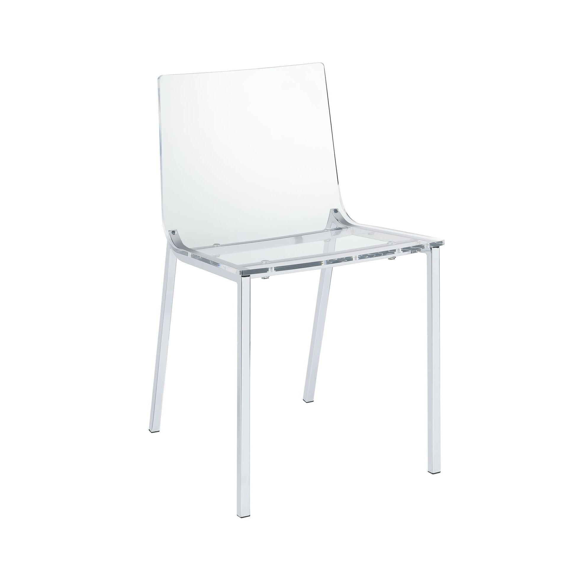 Lavinia Dining chair will for sure have your guests in awe. This see-through design provides a visual interest for your space without taking up too much space. Made of strong acrylic all over and metal. Built on four sturdy chrome legs. The Lavinia chair is very versatile and blends well into your style whether modern, contemporary, or minimalistic. Ships two chairs in a box. Weight capacity is 300 lbs per chair
