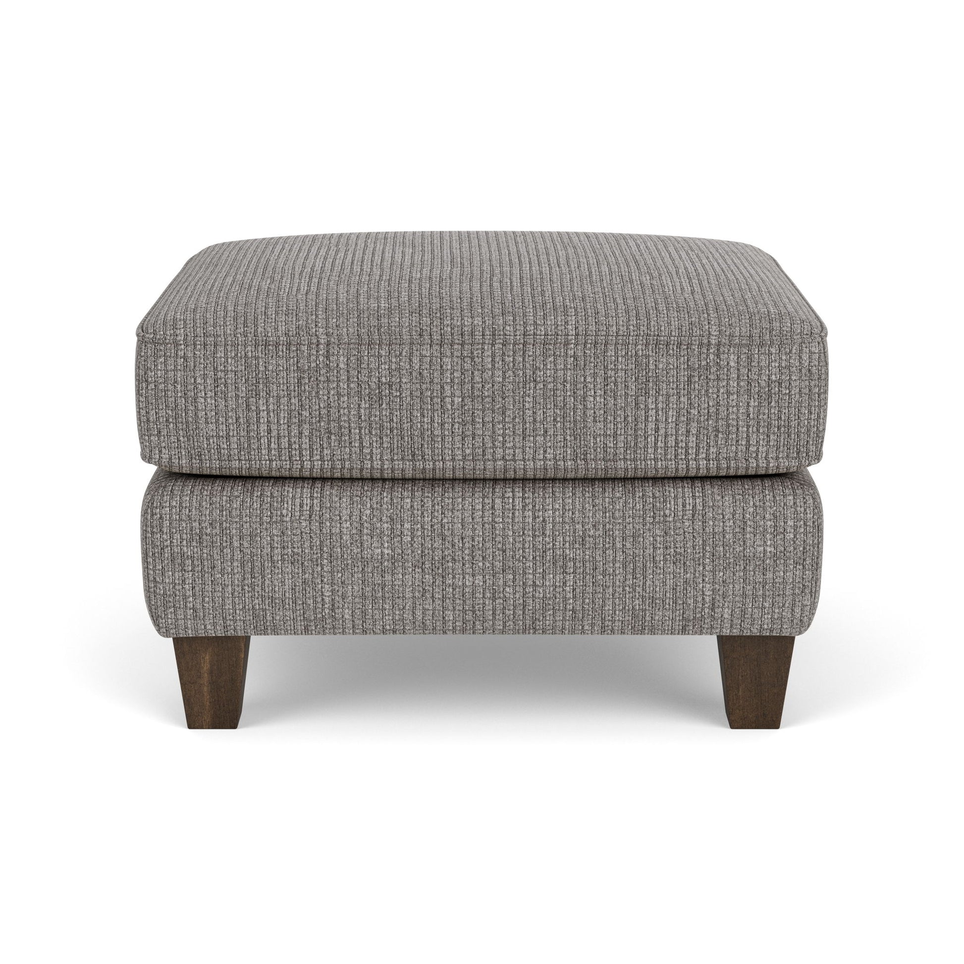 Fit, flared, and artfully paired with traditional style. Libby is a transitional stationary style with clean lines and graceful curves. Its off-the-floor frame is complimented by square tapered legs. This ottoman features a detailed welt trim. The posh and plush style of Libby fits in with many home décor spaces.