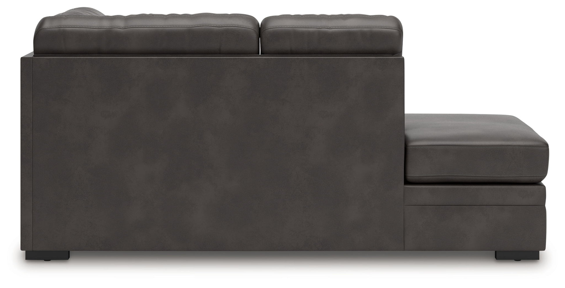 This left-arm facing corner chaise is made with faux leather upholstery. Pairs with other items in the series to make a sectional.