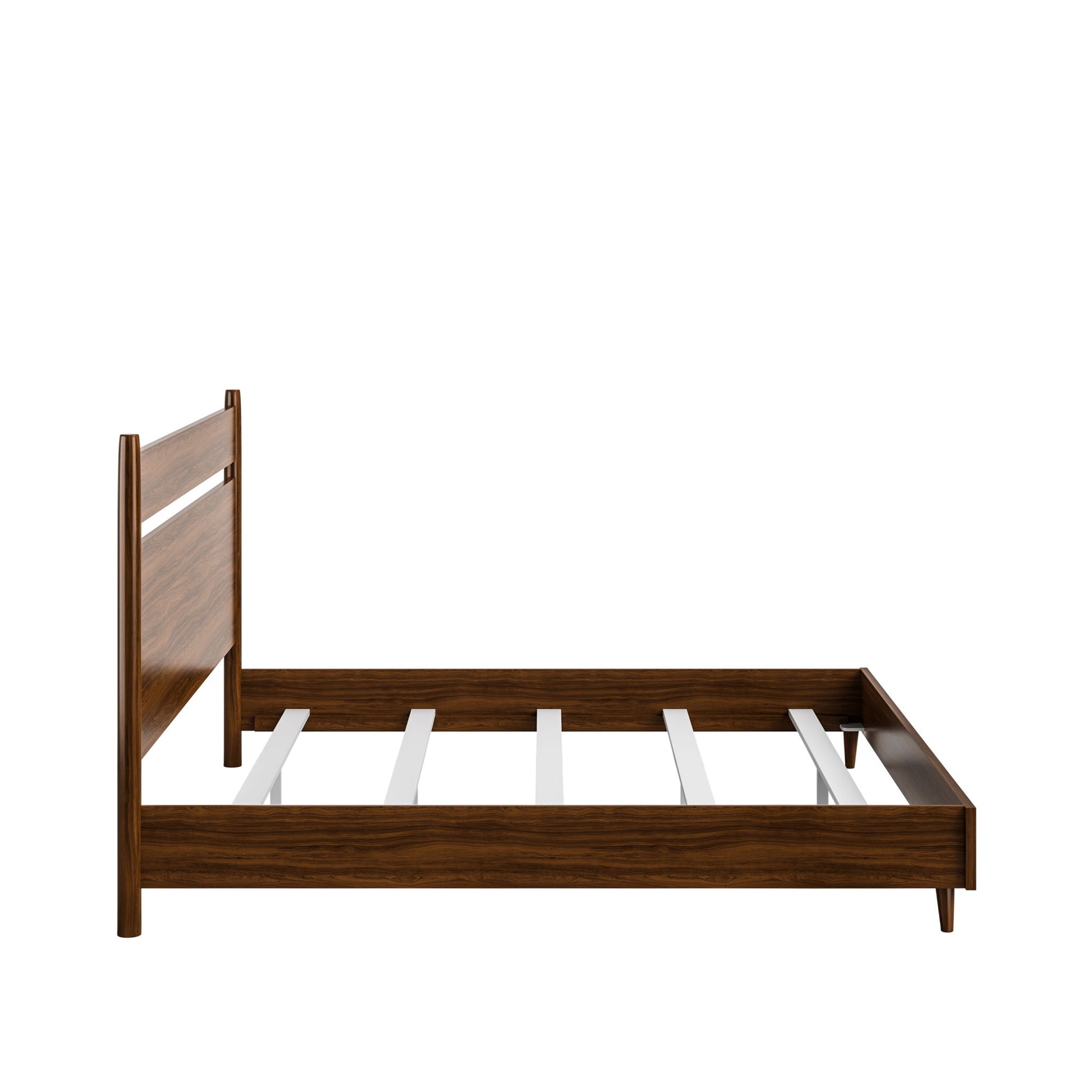 Timeless Simplicity Relax in retro style with the Ludwig king panel bed, featuring an open wood headboard design for a simple tailored look. Anchored with clean lines and tapered, splayed legs in classic mid-century styling, this bed is accentuated by a warm, walnut finish for a sophisticated look. Also available in queen sizes, the bed is smaller scaled to perfectly fit in any size bedroom. Timeless design and high-quality construction ensure the Ludwig bed will be enjoyed by future generations.