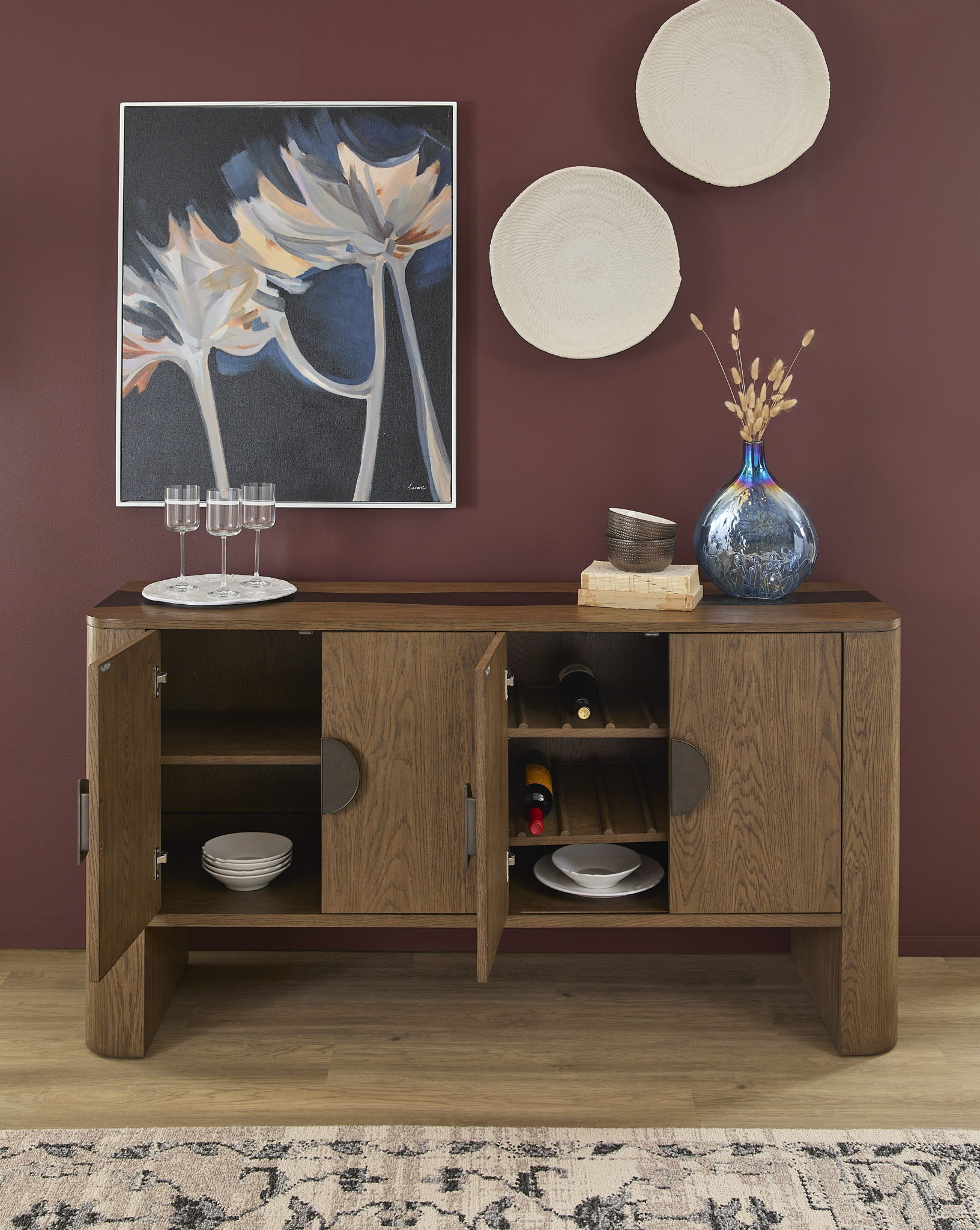All the modern luxury you need, with natural, organic influences. Lyra is the perfect combination of nature and innovation. The sleek buffet showcases a harmonious blend of contemporary design and natural elements, creating a stylish yet inviting centerpiece for your space. Crafted with high-quality materials, it stands up to everyday use while maintaining its sophisticated charm. The perfect blend of contemporary and natural, Lyra elevates your dining area into the modern age while still feeling warm and grounded.