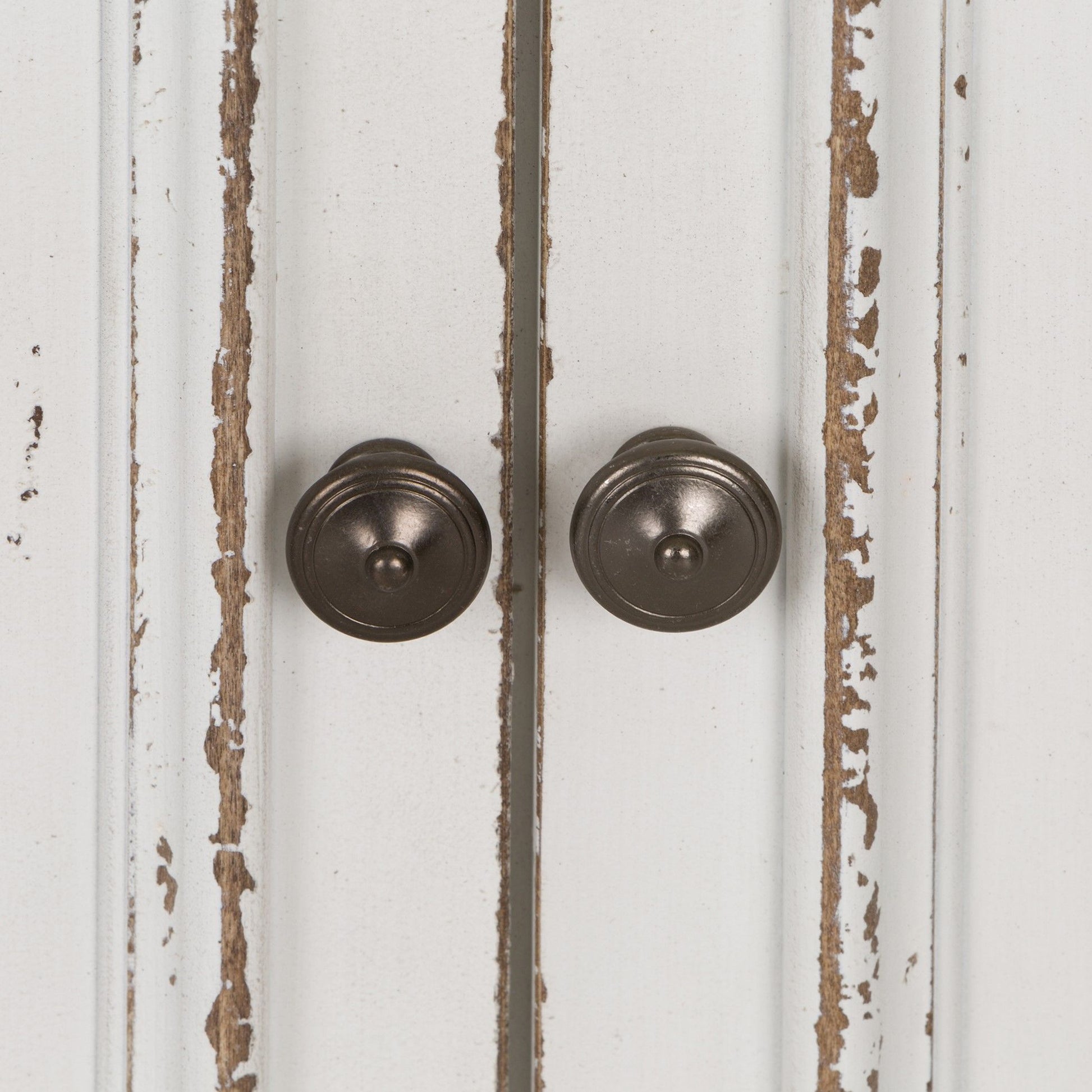 Accent your space with the perfect blend of European Traditional design, using this unique Magnolia Manor 78" bunching bookcase. Crafted with poplar and rubberwood solids with white oak and birch veneers, this piece features an antique white finish, adjustable shelving, cabinet storage, bead molding, and a flush fit to the wall accented by knob hardware in an antiqued pewter. Warm antique finishes and artistic distressing along with grand scale a group to be passed to generations.
