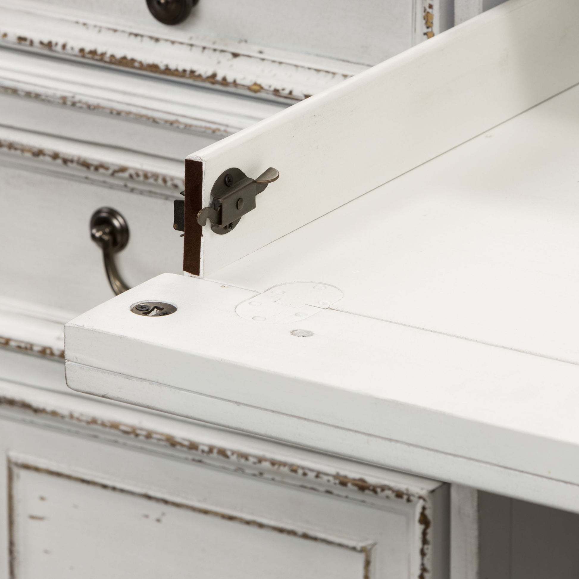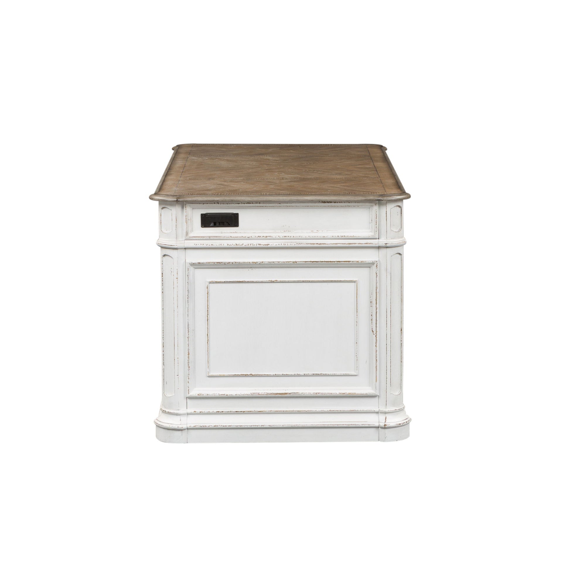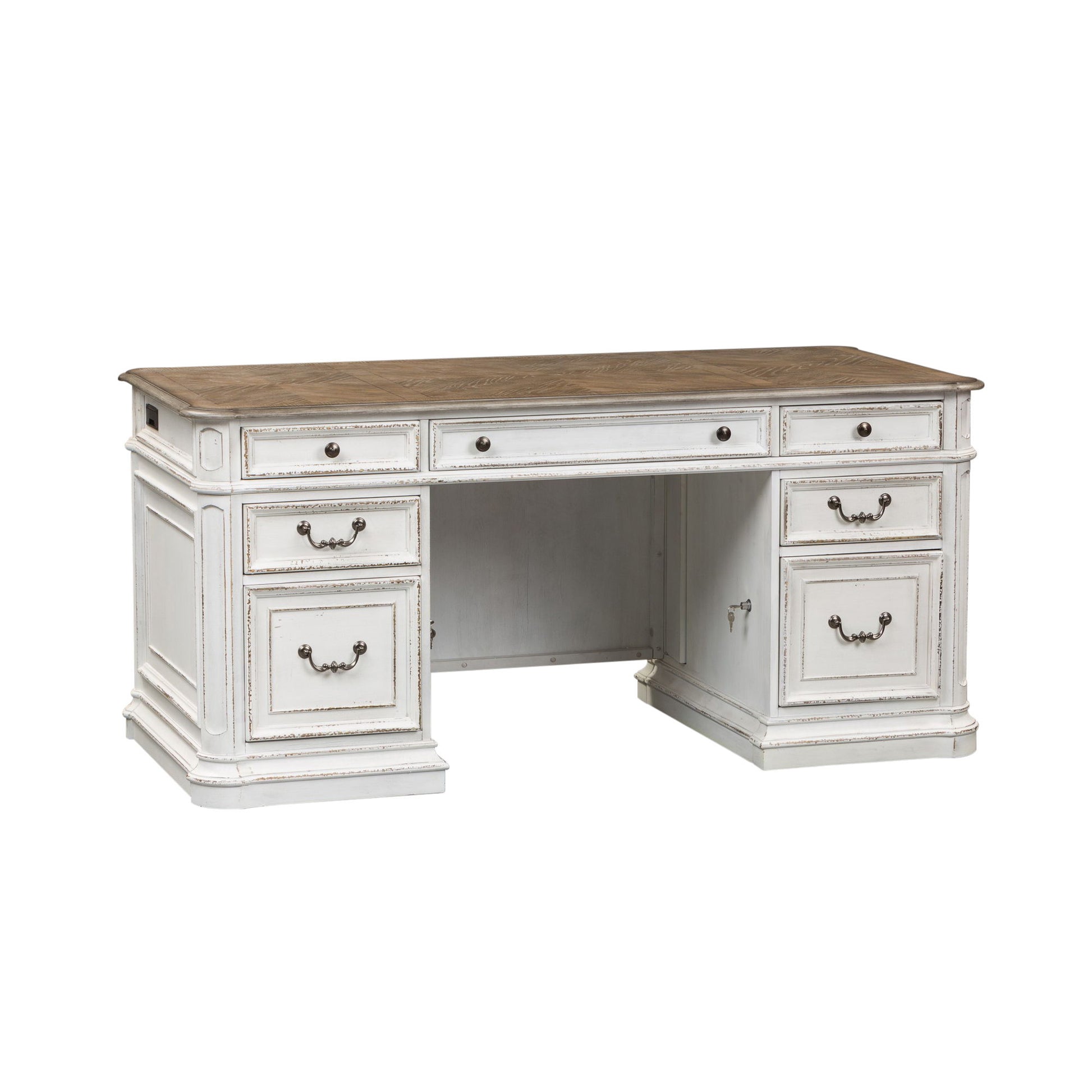 Crafted with poplar solids with white oak and birch veneers. Features a fancy face veneer pattern, canted corners, finished in a weathered brown with white hang up. Cannot stand alone. Pair with the base to make a complete desk.