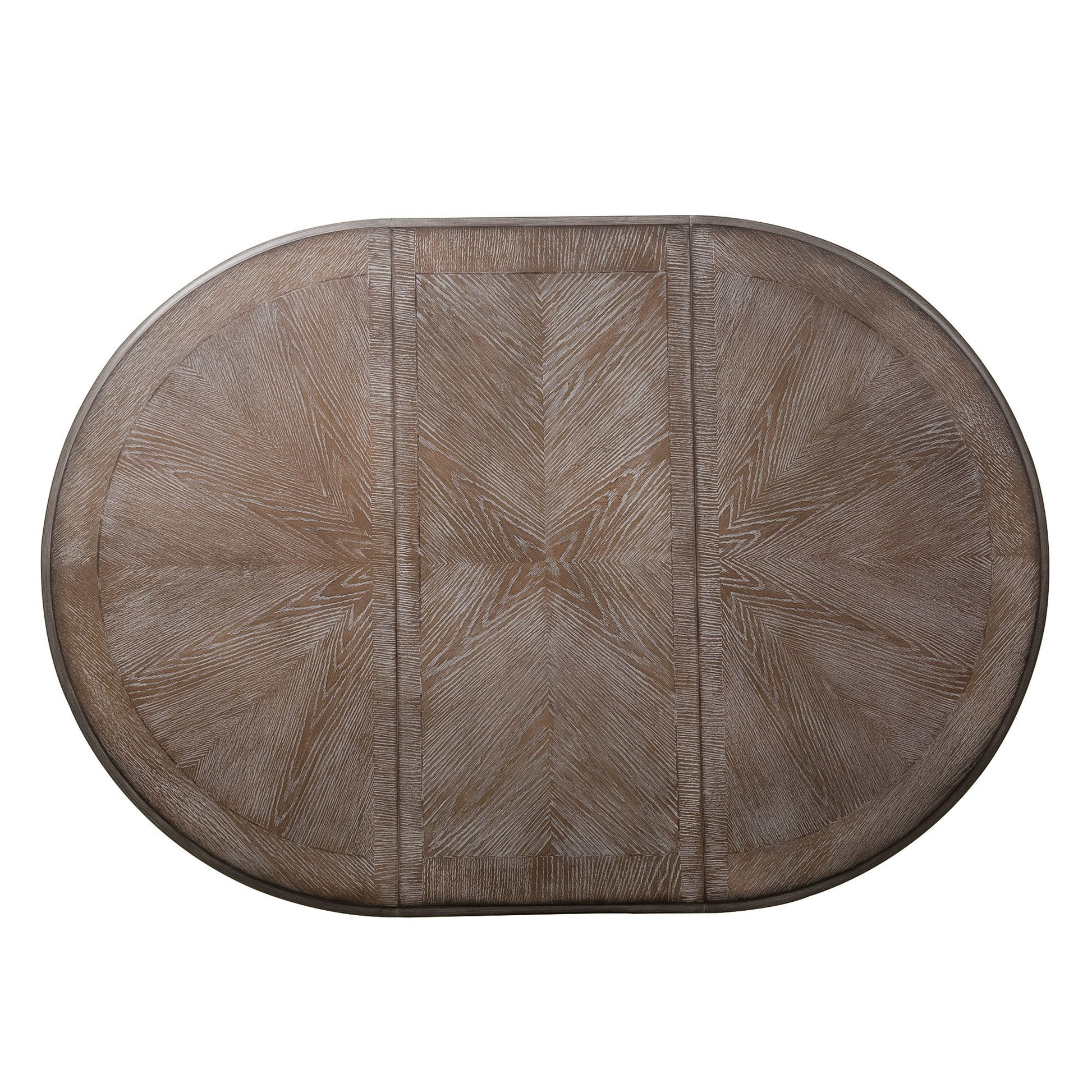 Gather the family together for dinner around the Magnolia Manor pedestal table. A 42" round is perfect for small spaces or add in the 18" leaf to expand the table to an oval for larger crowds. Crafted of poplar solids and white oak veneers the pedestal table features a fancy face top finished in a weathered brown. The faceted turned base is finished in an antique white with heavy chipping that is accented by splayed feet. Perfect for any decor from farmhouse to cottage living.