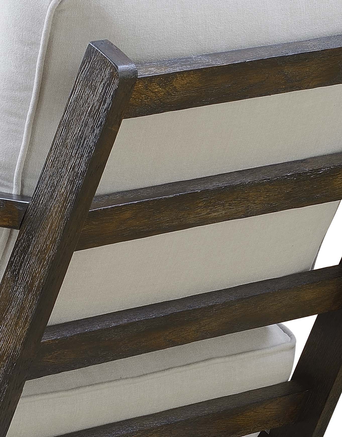 The Metro Accent Chair will keep you in style while you relax. This Adirondack style chair is the perfect addition to your living space, with its contemporary show wood frame. The back features a ladder back design, adding extra flair to this already stylish set. The transitional antique wooden frame makes it easy to pair this accent chair with existing decor. The seat and back cushions are foam filled and will let you kick back and relax in style without losing comfort.