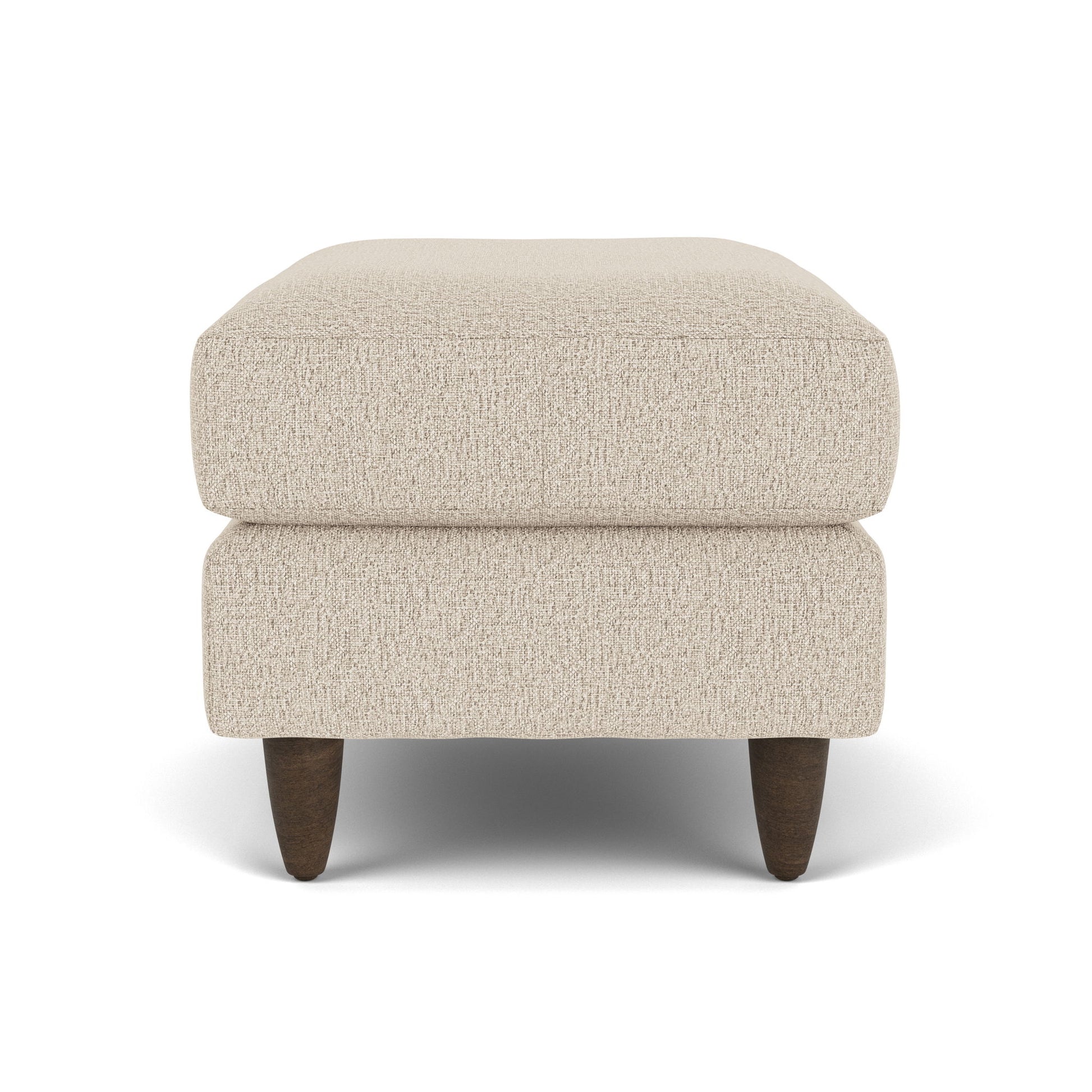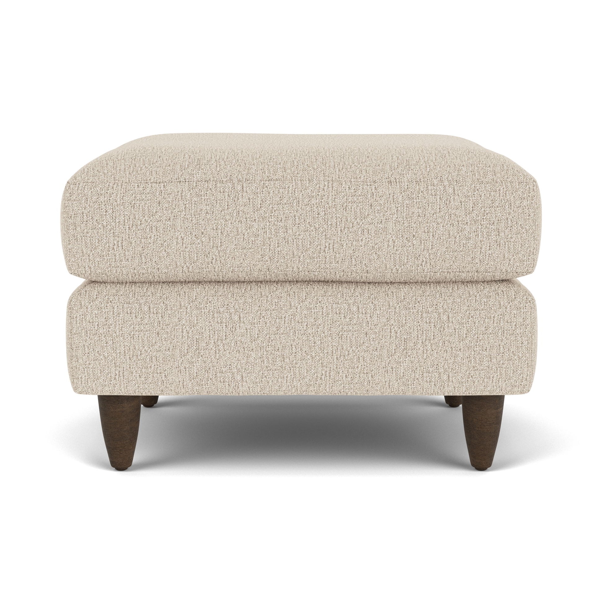 Retro Flair. Add some mid-century modern chic to your living spaces with the Mia ottoman. Soft lines and round tapered legs provide a classic retro feel that looks even more inviting when paired with the coordinating Mia chair, sofa or loveseat. A thick, plush top cushion offers respite for tired legs or makes for a comfortable impromptu seat when entertaining.