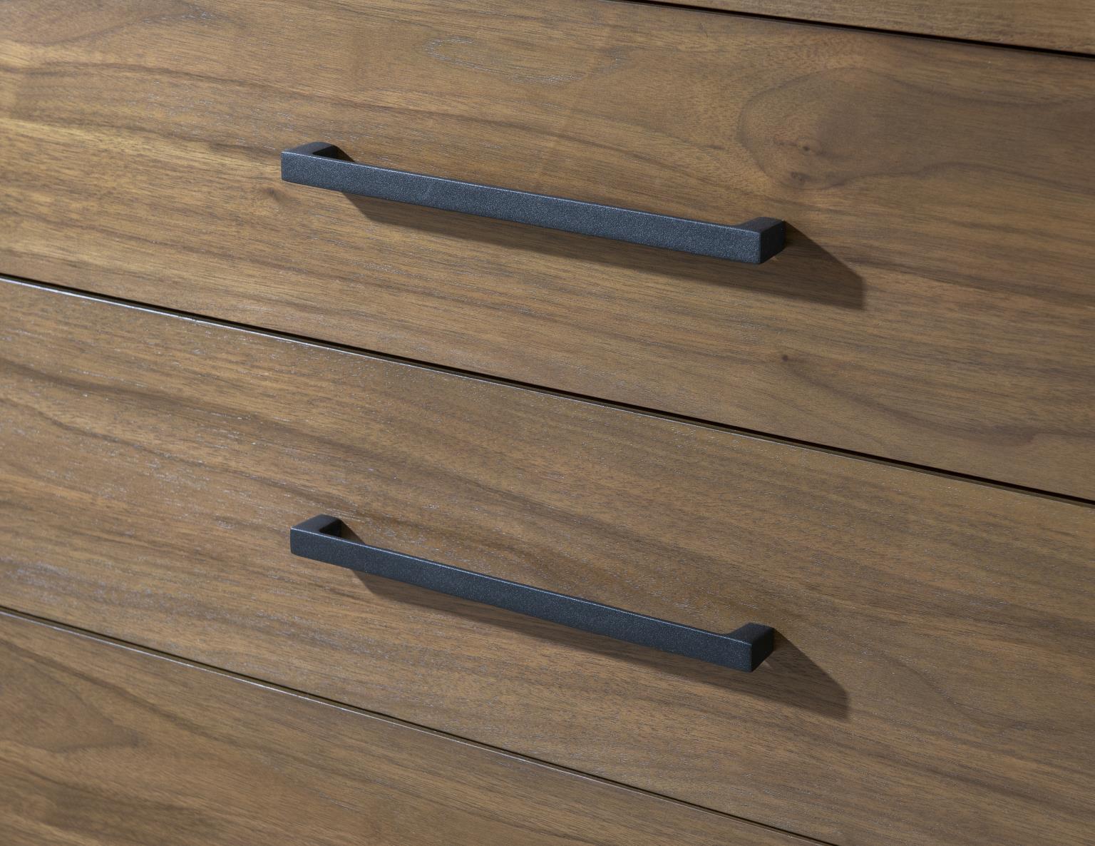 The Midland total home collection offers a heartland-inspired, feel-good casual look that seamlessly blends styles from casual transitional to modern, and from Craftsman to Boho. Featuring a Warm Amber finish and Matte Black hardware, each piece is crafted from Hardwood Solids and Walnut. A standout element of the collection is the wood basket weave design, elegantly showcased on chair backs, door fronts, and the panel headboard. With a young and fresh vibe, the collection includes bedroom, dining, occasional, home office, and home entertainment.