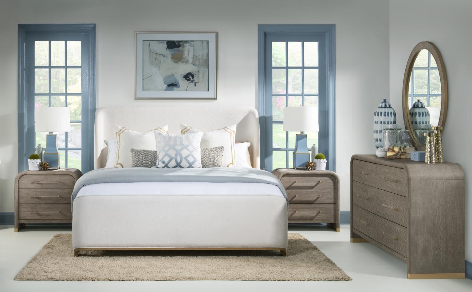 Approachable glamour. That's the look of the Miramar Total Home Collection from Legacy Classic - Modern. The collection features and acrylic accents bold fluting detail and waterfall edges. The accent finish is used in banding on case bases and foot rails table bases and on the posters of the Canopy Bed and low-post bed.