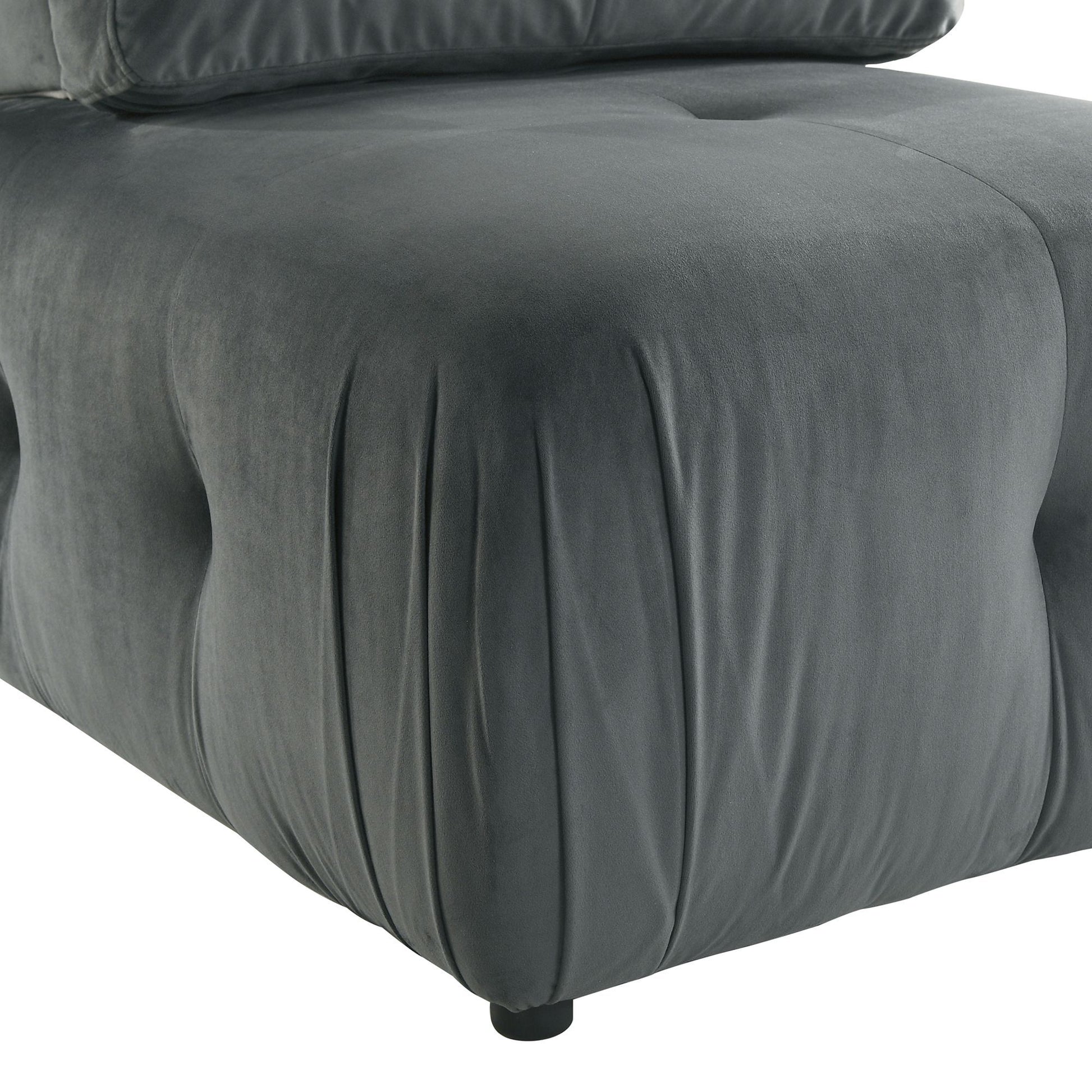 Outfit your space with the lavish design of the Nahla Modular Chair. This piece freestanding nature allows versatility in staging and adapts to various room shapes and sizes. The chair framing of durable engineered wood is comfortably and fully upholstered in luxe velvet with decorative button tufting, while the seating is amply padded with supportive cushioning. The detachable back cushion and included pillow ease maintenance, furthering this piece appeal. For a comfortable, quality, and stylish addition to your room, the Nahla Modular Chair delivers.