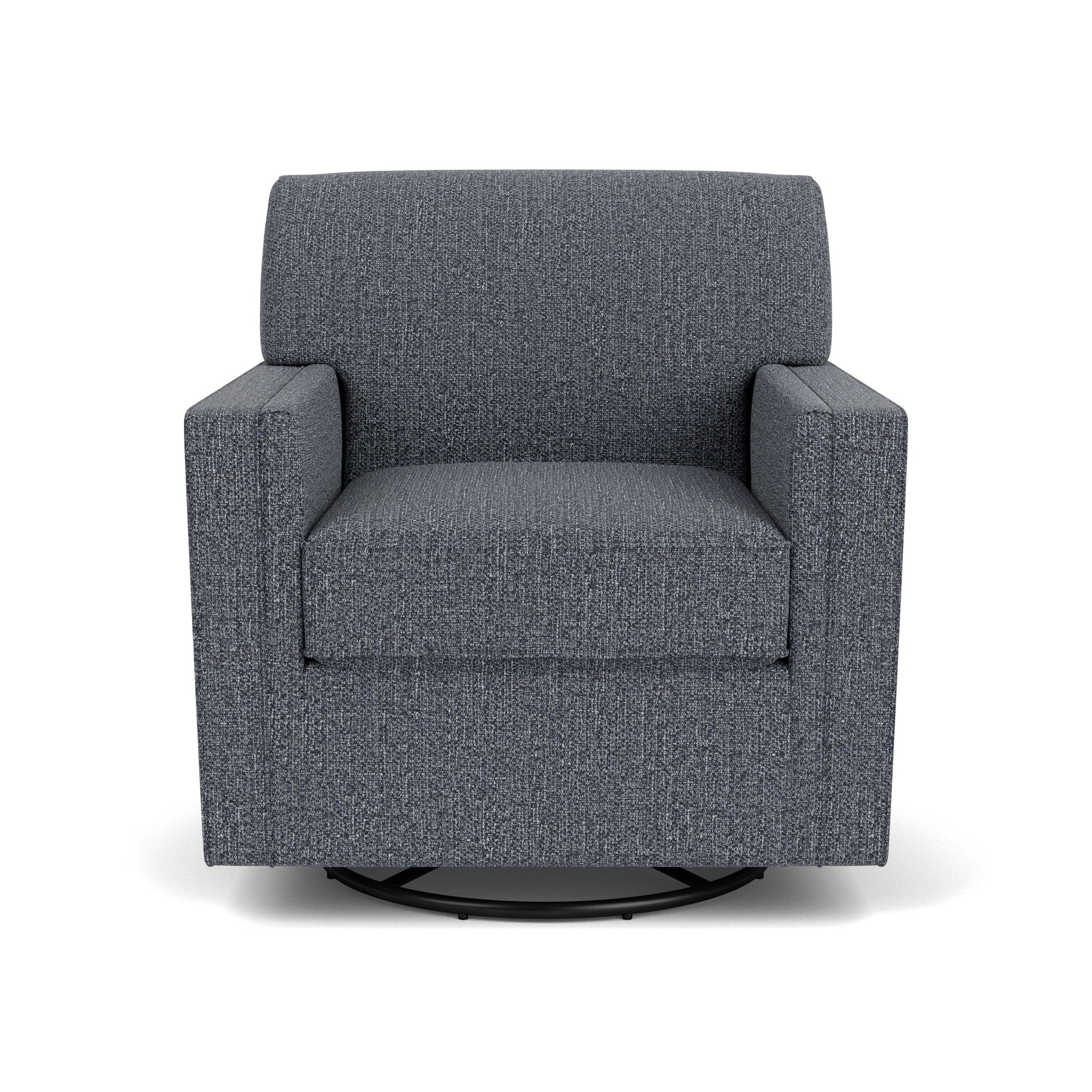 Easy Elegance. Relax in a perfectly proportioned chair that balances simple sophistication with lasting comfort. A tight back and soft, reversible box seat cushions provide firm yet comfortable support, while a swivel base allows the chair to turn a full 360 degrees. Simple, clean lines and refined welt detailing offer a clean and tailored silhouette for any size living space.