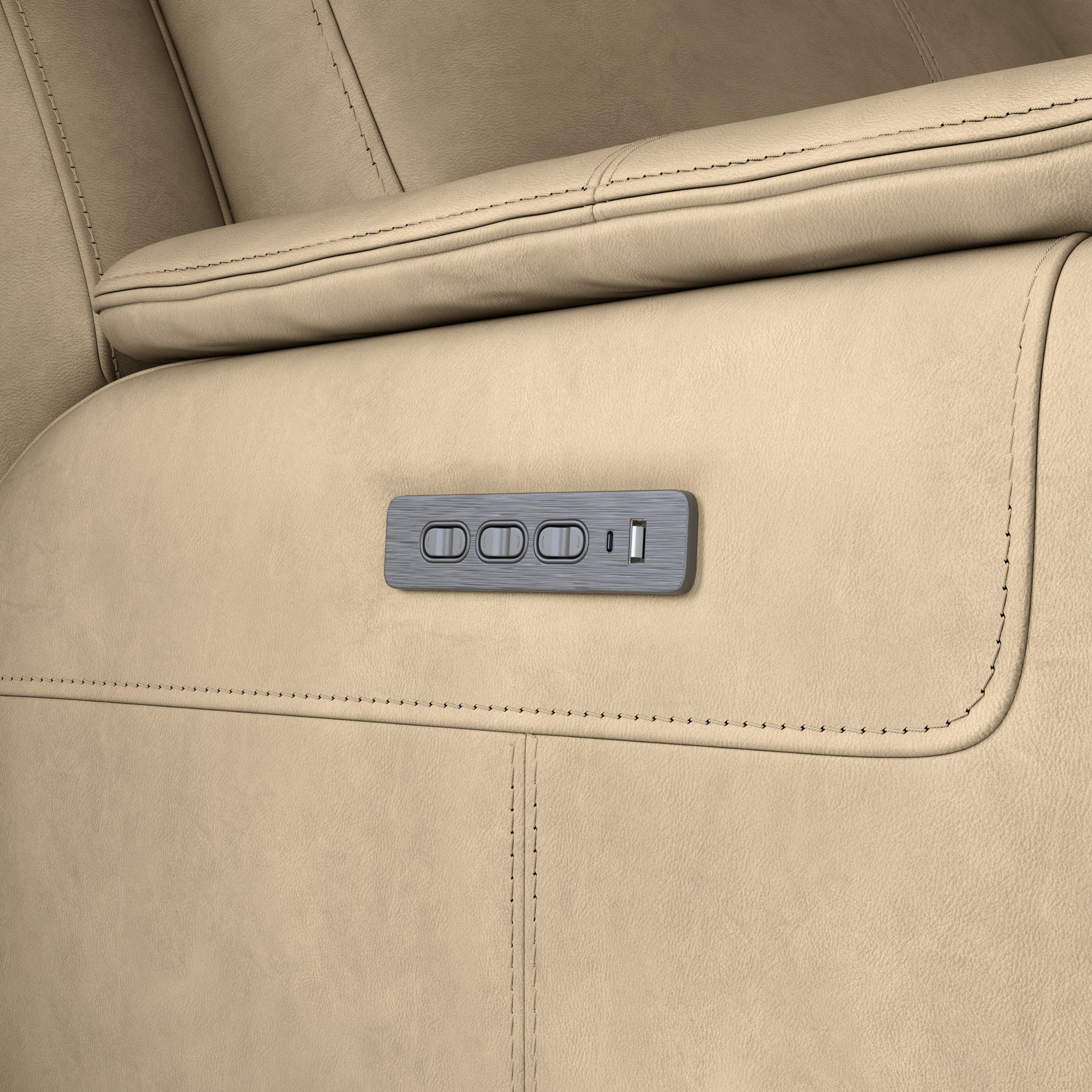 - Fashionable, thin pad-over arms with a high divide back