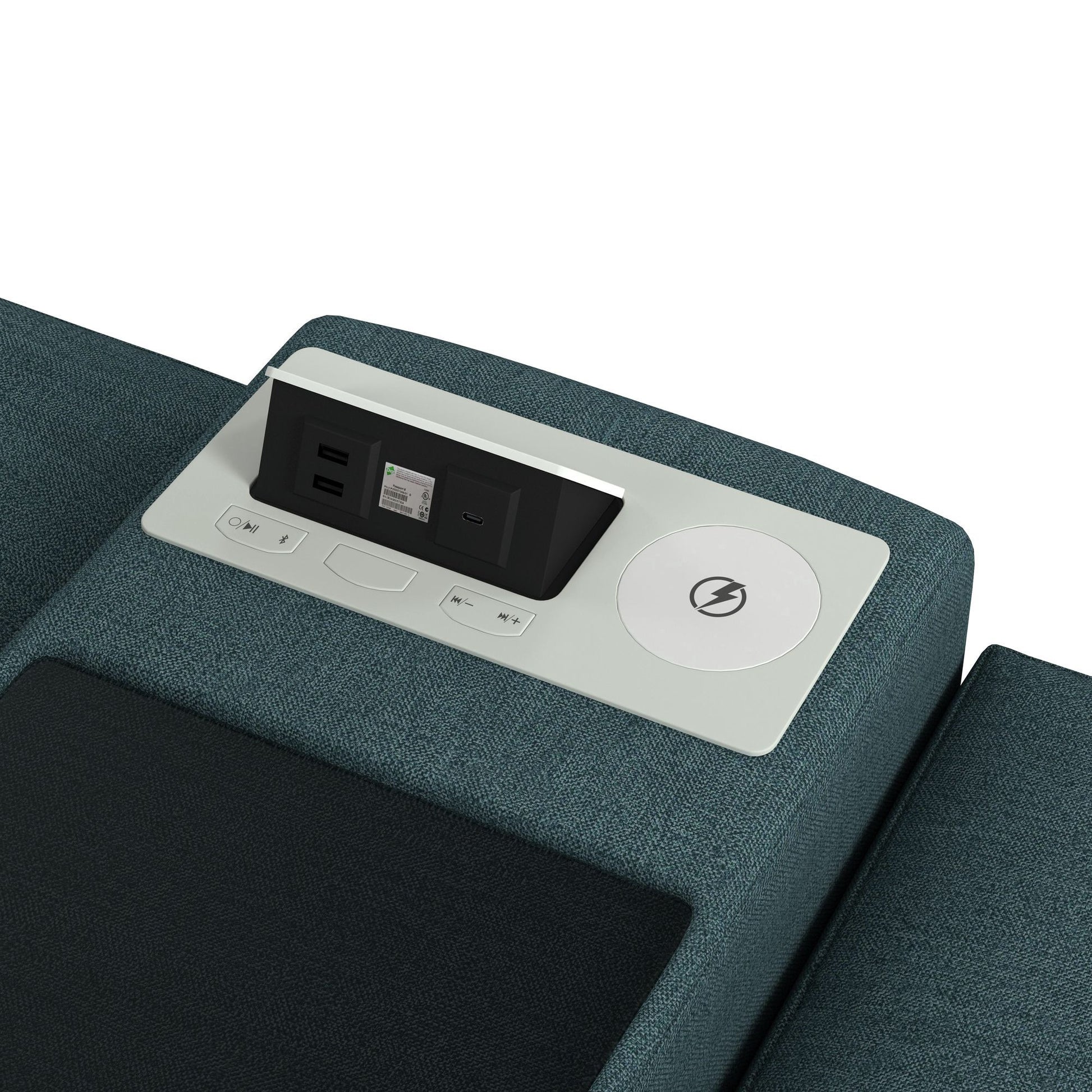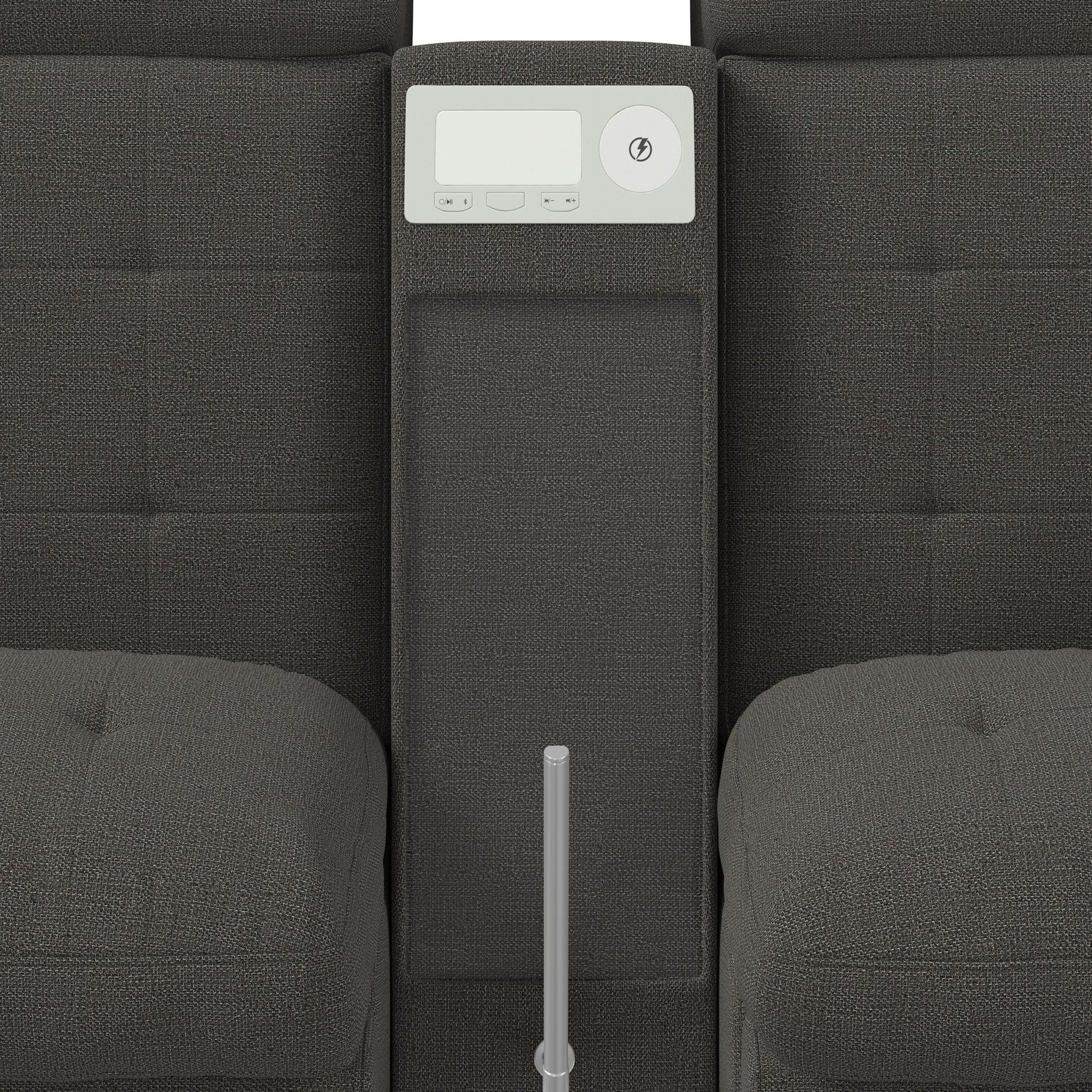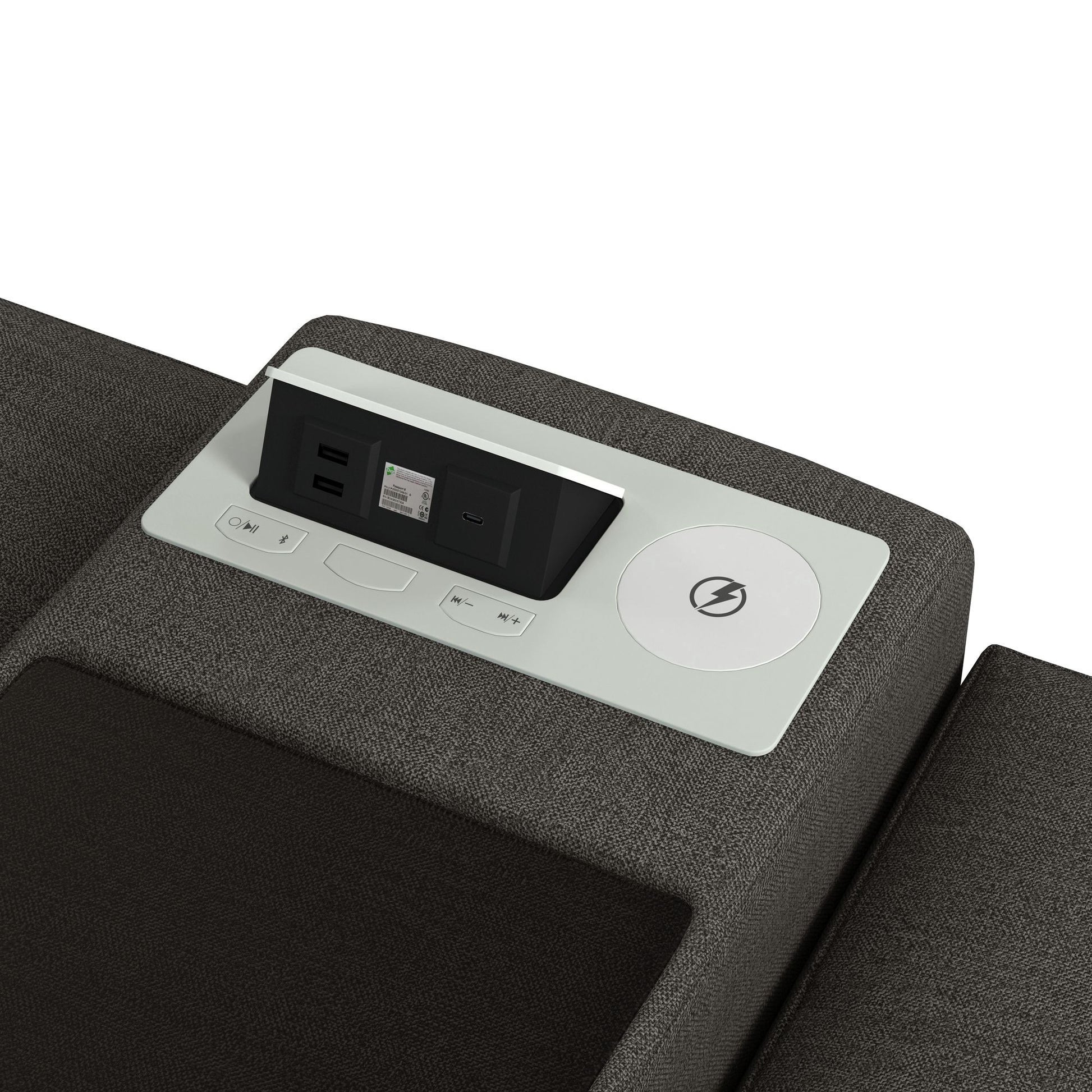 Embrace the versatile style of the Options One Living Room Set. The flexible and versatile design adapts to various room shapes and sizes, permitting various functional configurations. Generous foam cushioning supports even the longest moments of repose and decorative button tufting adds stylistic flair. Thoughtfully designed, integrated storage in the ottomans and consoles help reduce clutter, while the media console is conveniently equipped with a power strip and reading light. Sleek, smart, and versatile, the Options One Living Room Set is a quality addition to your living space.
