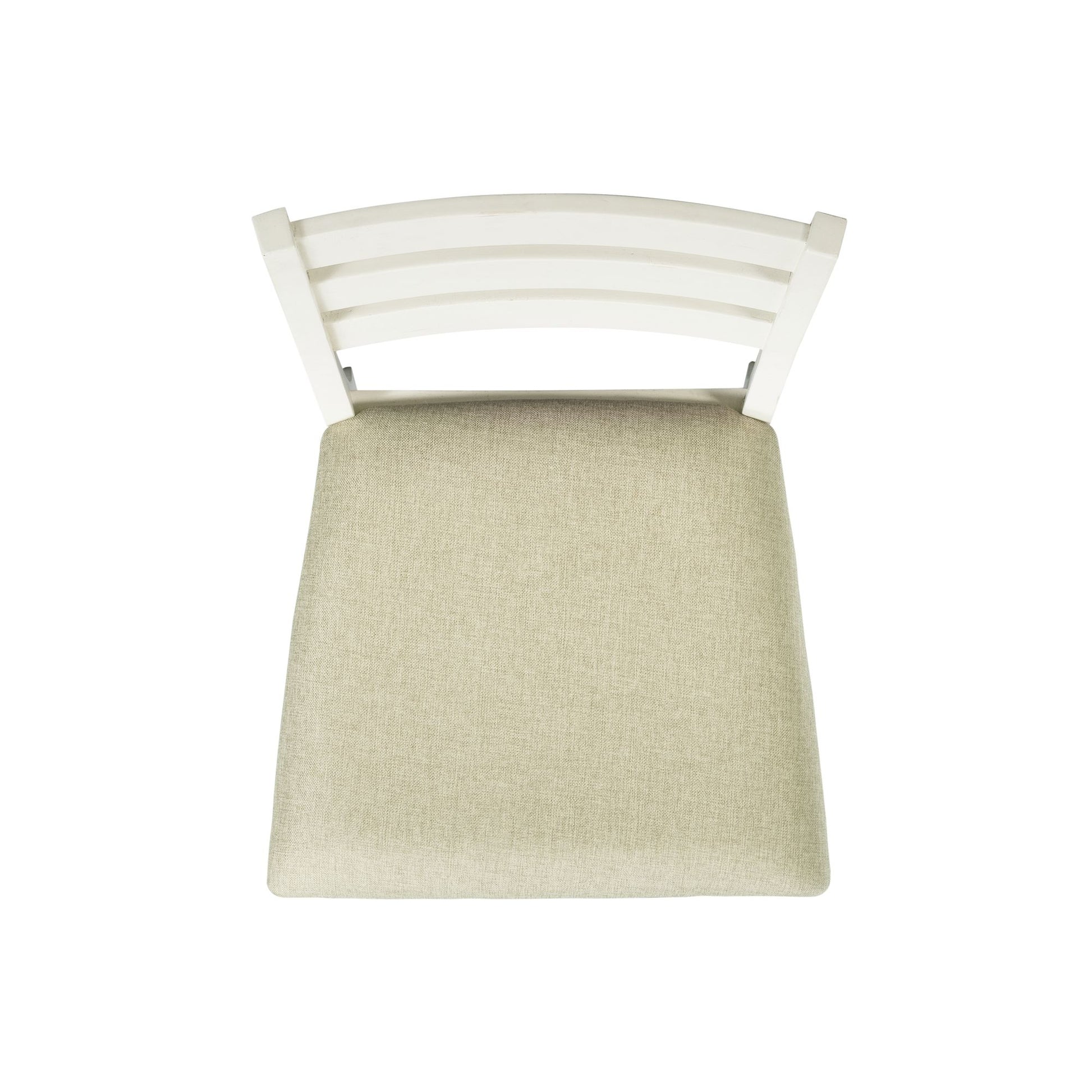 The Park Creek Ladder Back Side Chair Set will look perfect with your Park Creek Dining Table! This dynamic duo features a ladder back design in a beautiful cottage white finish. Youll stay plenty comfortable throughout dinner thanks to the foam cushion seat. The taupe fabric pairs beautifully with the cottage white finish, giving it a classic farmhouse style. Add these chairs to your home today for a look that will never go out of style!
