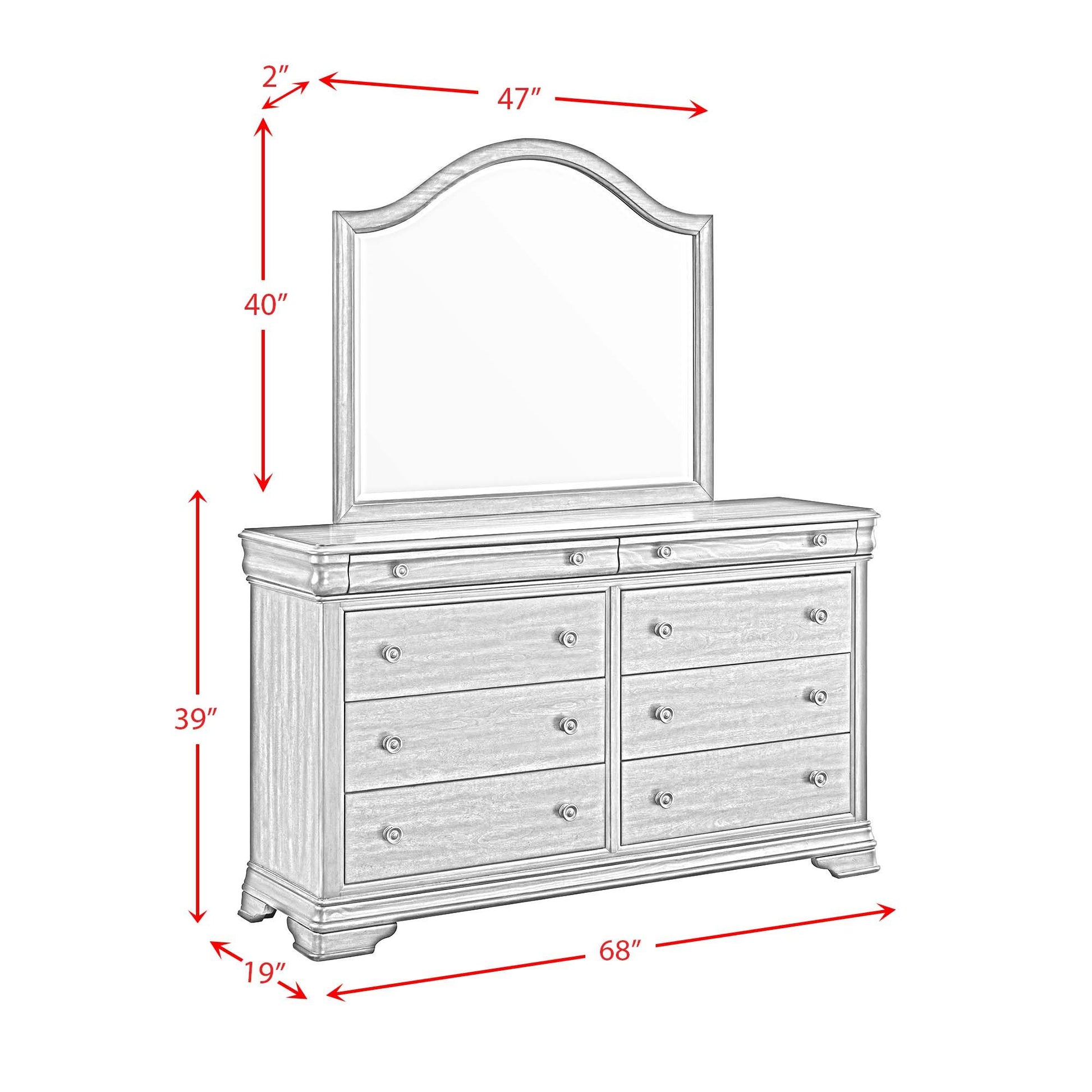 The Phillipe 8-Drawer Dresser is the epitome of elegance and sophistication. With its sleek stained drawer panels, this piece will add a touch of luxury to any bedroom. The beveled edges throughout enhance its refined look, while also offering practical features like top jewelry drawers with black felt lining to provide a safe and stylish storage solution. Crafted from fine poplar wood with a beautiful cherry finish, the Phillipe Dresser is a timeless piece built to last.