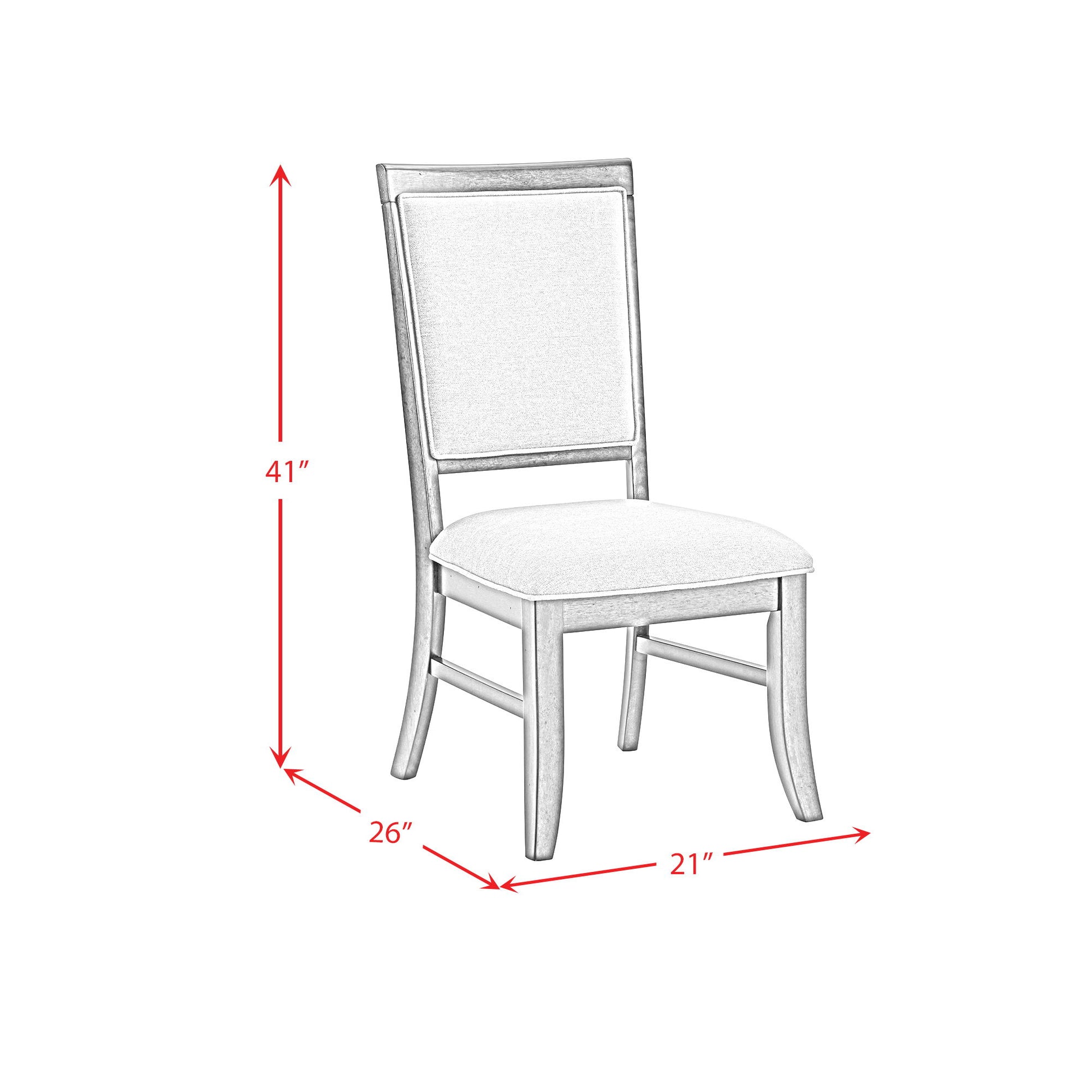 Add a touch of timeless elegance to your dining space with the Phillipe Side Chair set. Featuring a rich cherry finish, these two chairs bring warmth and sophistication to any room. The stylish lattice back design creates visual interest, while the soft grey fabric upholstery offers a luxurious and comfortable seating experience. Gently curved legs add subtle sophistication and extra stability, while the padded seat ensures comfort during family dinners and extended gatherings. With a versatile transitional design that effortlessly blends with traditional and modern decor, the Phillipe Side Chairs are the perfect complement to your dining table.