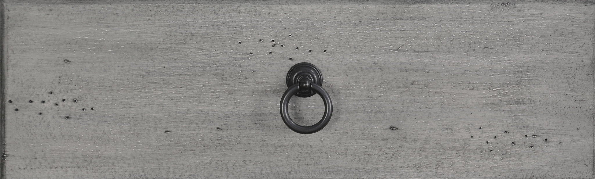 - Distressed graywash finish with medium brown top provide a well-worn and cozy aesthetic
