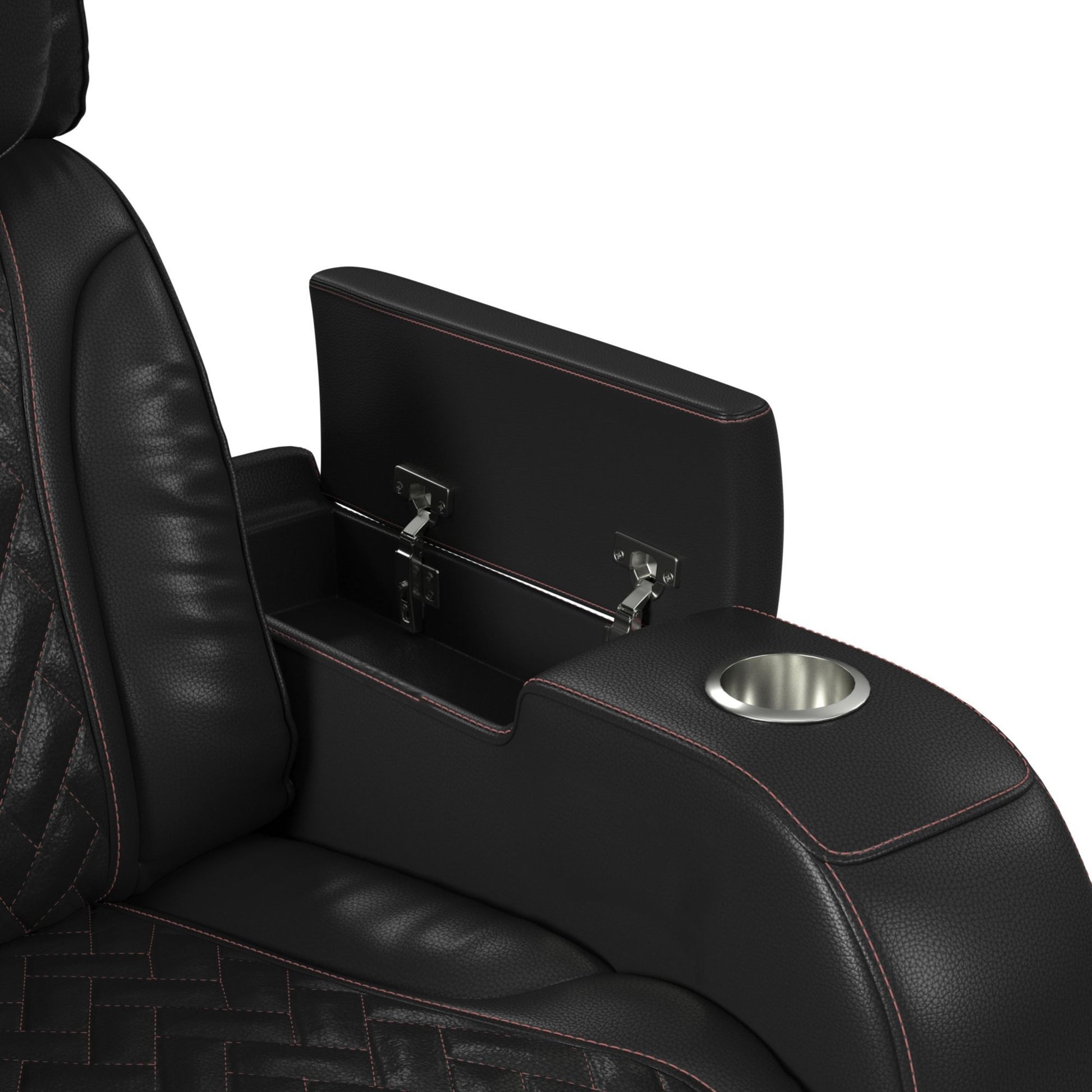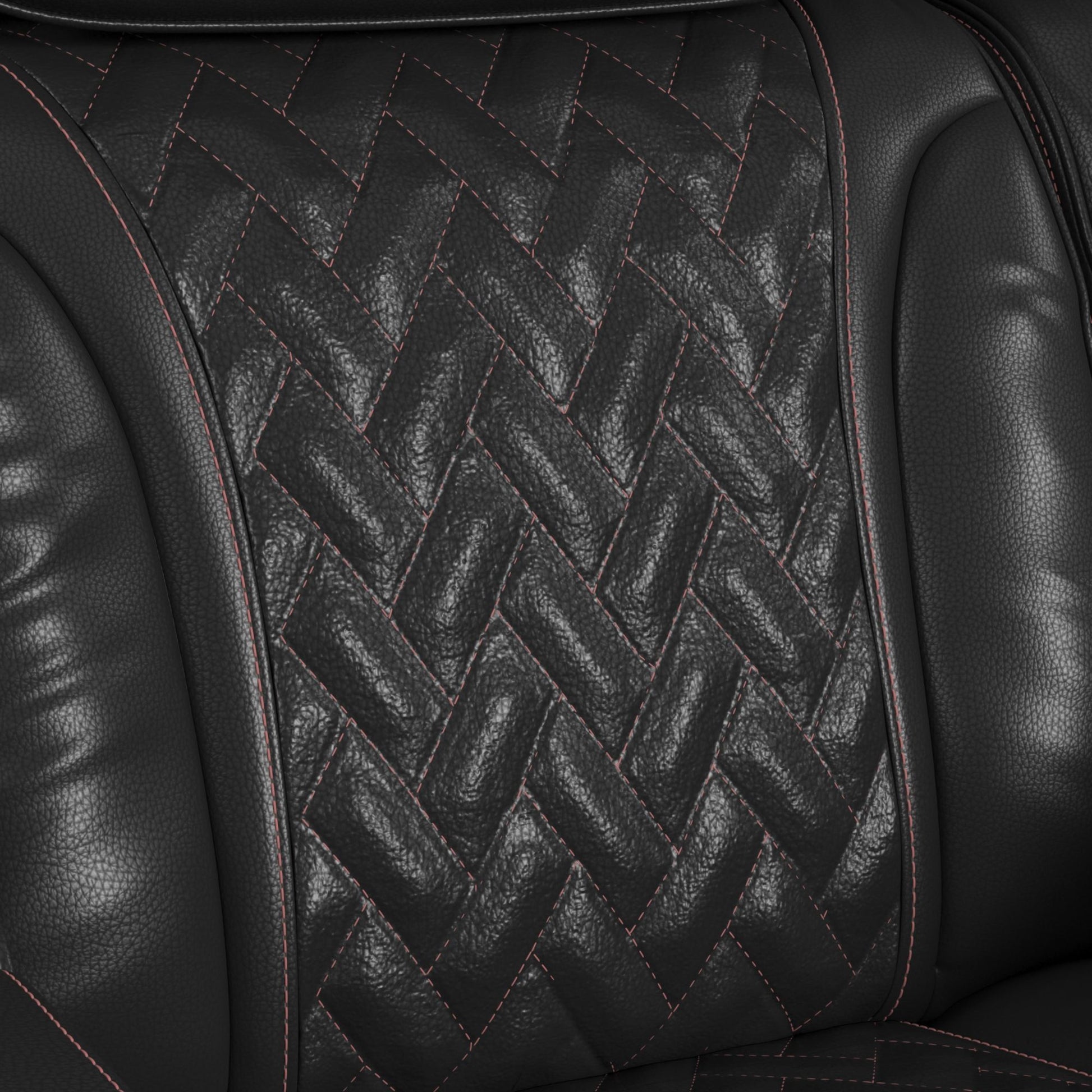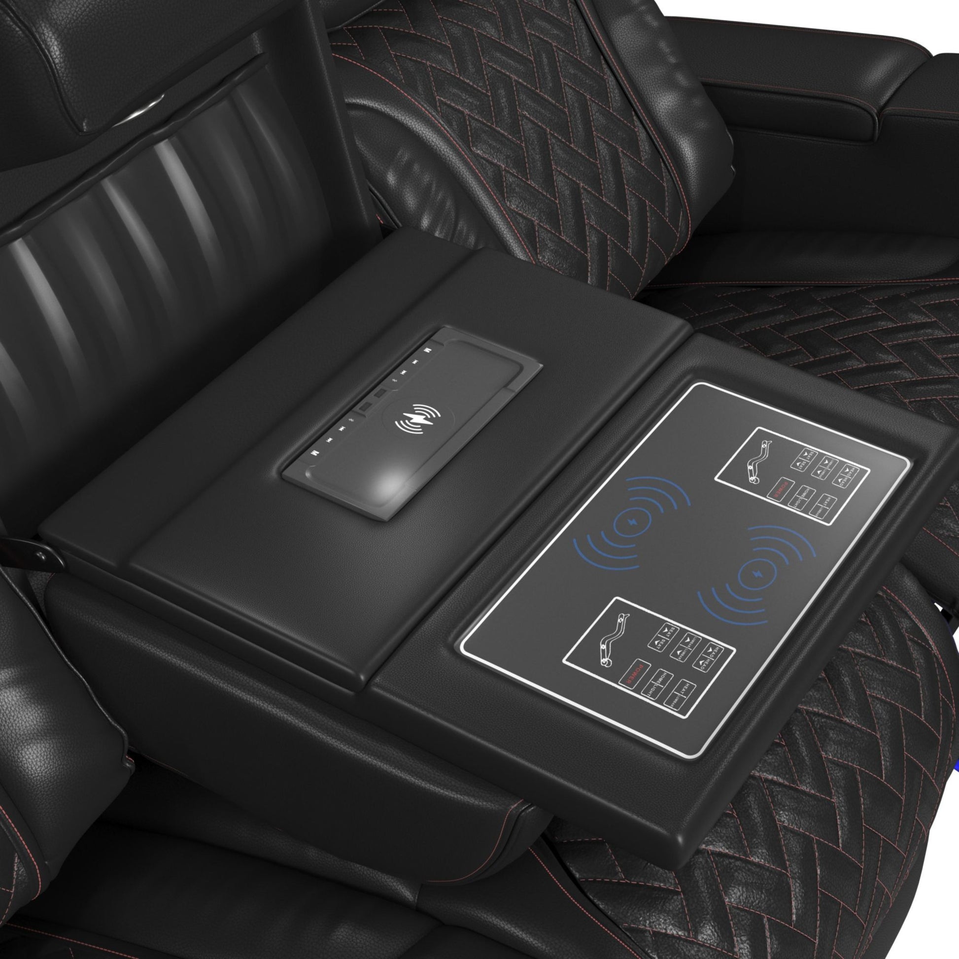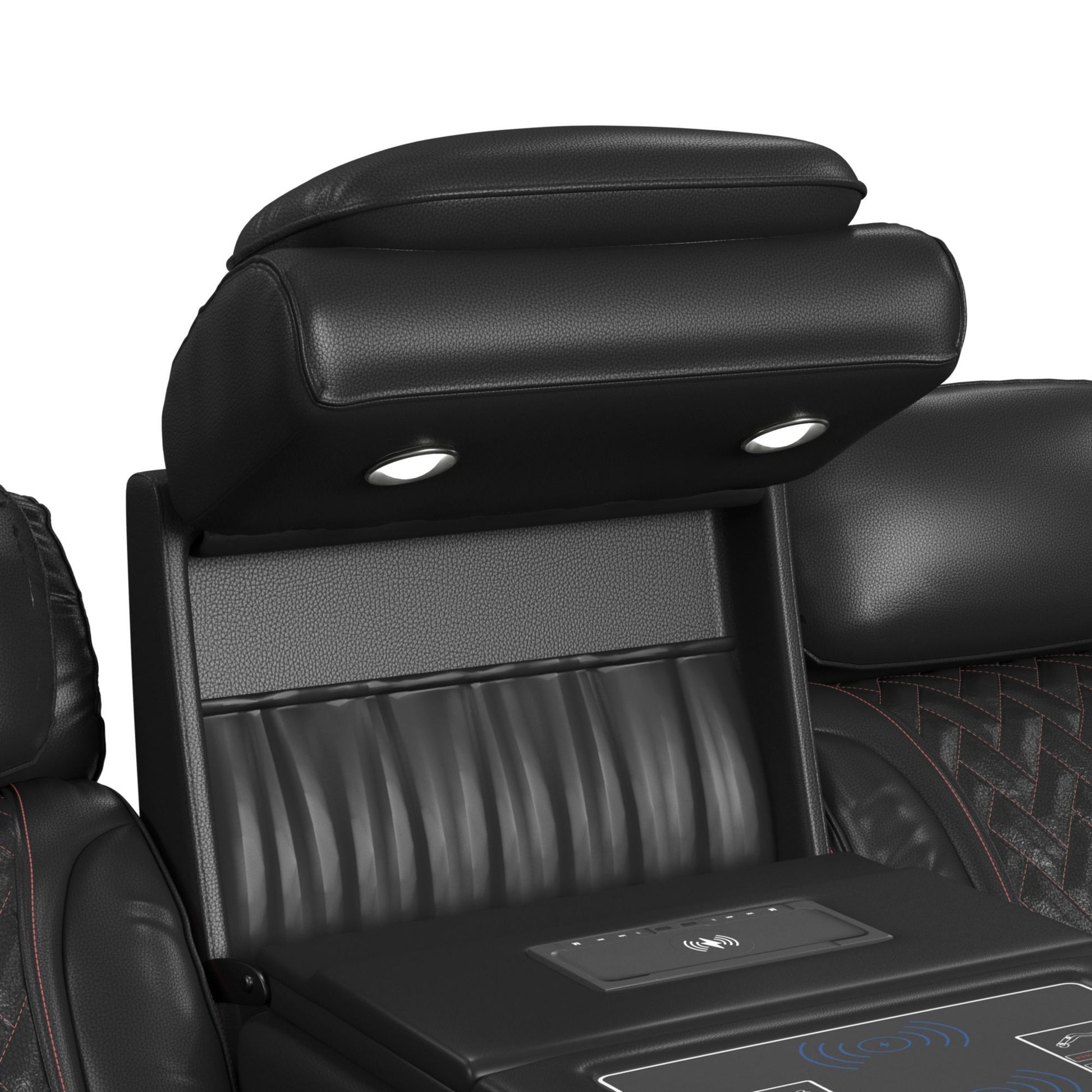 Prime Time - P3 Sofa With I Table, Reading Light, Heat, Massage, LED, And Speaker - Jett Black With Red Stitching
