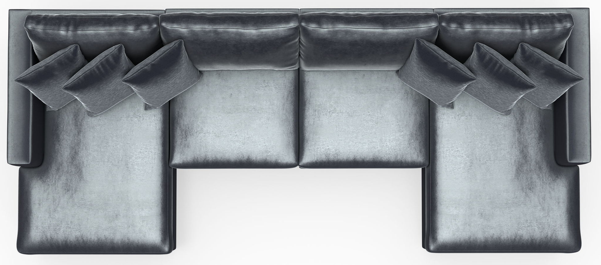 Remington is a track arm design Modular Sectional with loose backs and our Cuddler Cushion for ultimate comfort. Available in your choice of two luxurious velvet fabric colors: Pine or Slate.