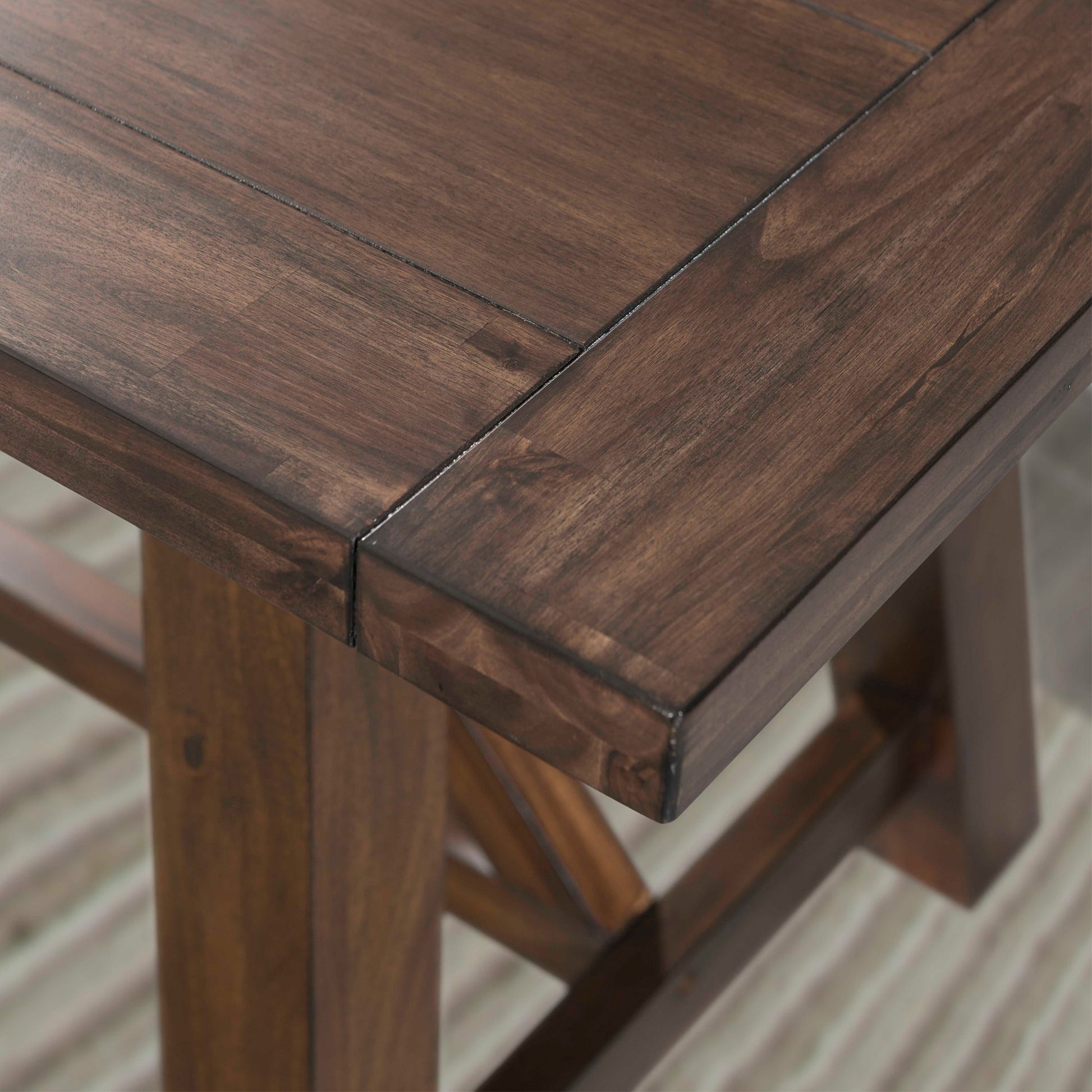 The Renegade Dining Set will be a standout in any kitchen. This rustic farmhouse set includes a table, four side chairs, and bench. The table base features trestle style legs with stretcher. Elevating this set, the side chairs are designed with an intricate cross back design. Perfectly mirroring the table, the bench and can seat two people comfortably as well. The finish of the complete set can effortlessly fit in with any other decor in your home. The best part of this set is that it ships in one box for ultimate convenience!