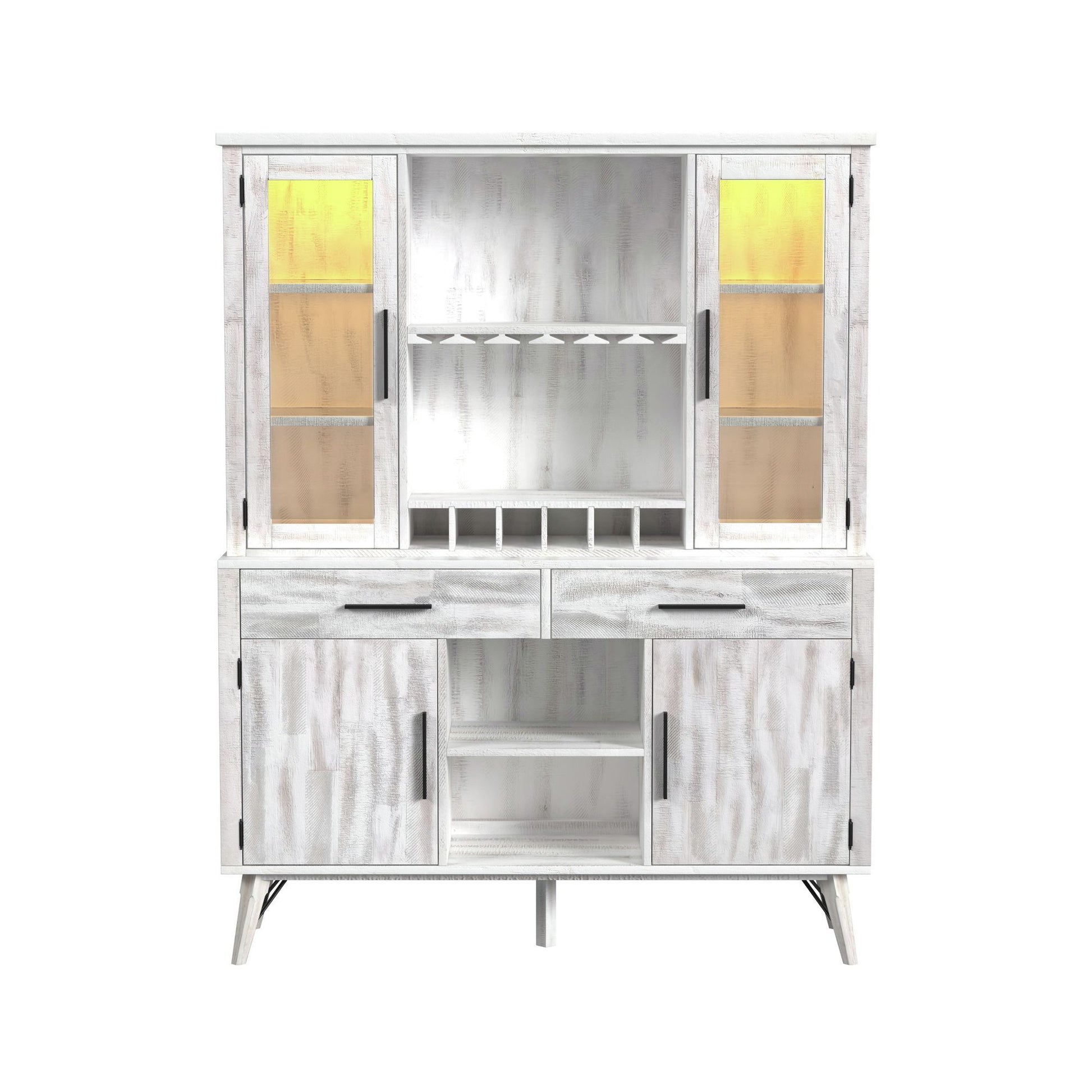 Rogen Rustic - Buffet & Hutch With LED - Rustic White