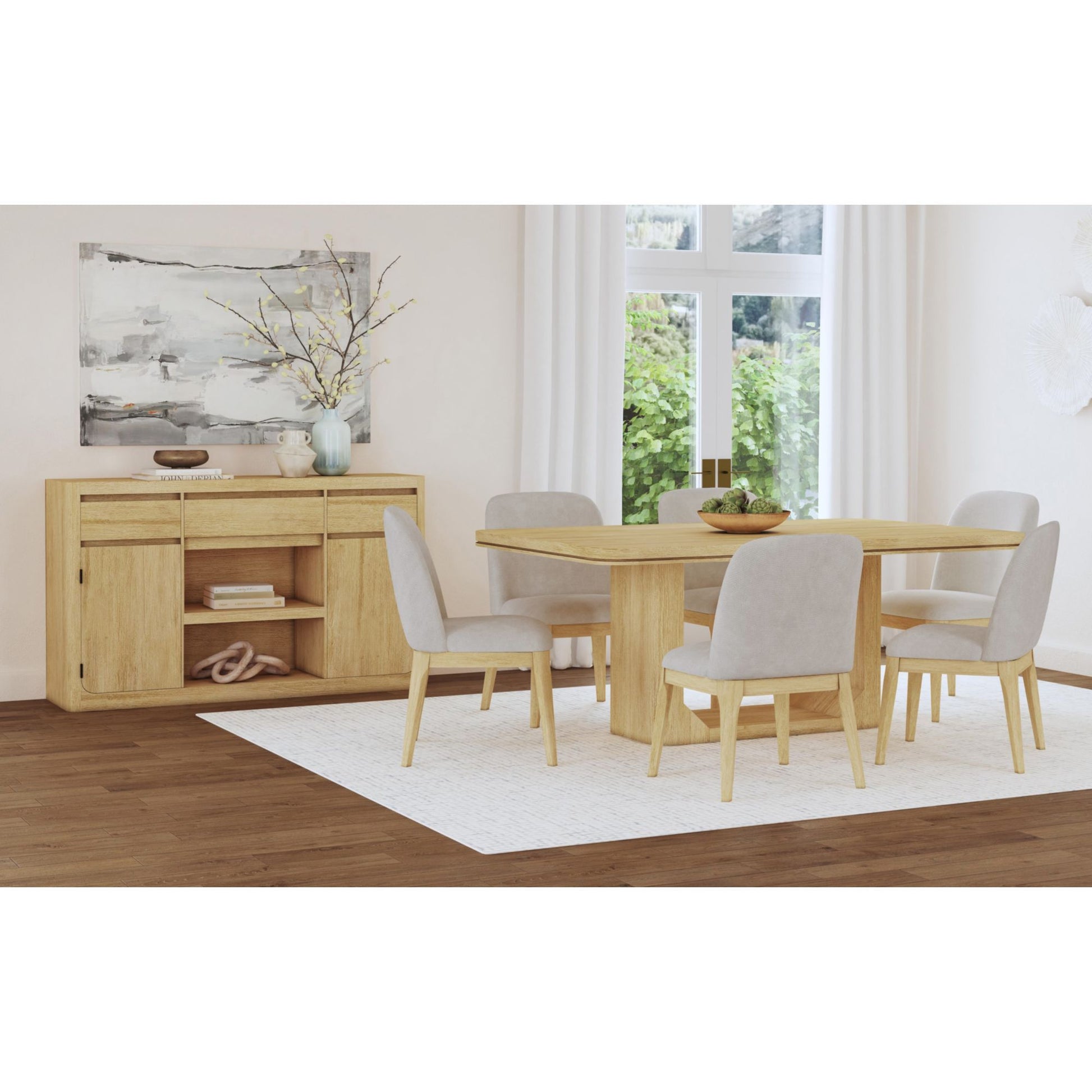 The Rosalie Dining Side Chair entices with the minimalist form of Scandinavian style. The sturdy and slightly tapered legs made of solid wood accent your dining space, while the versatile, light-colored upholstery enveloping supportive cushioning enhances comfort. The elegant and intentionally armless design maximizes your dining room’s space and removes barriers between guests, perfectly accenting the backrests’ gently rounded silhouette. For a sleek, versatile, and practical addition to your dining space, the Rosalie Dining Side Chair delivers in style and quality.