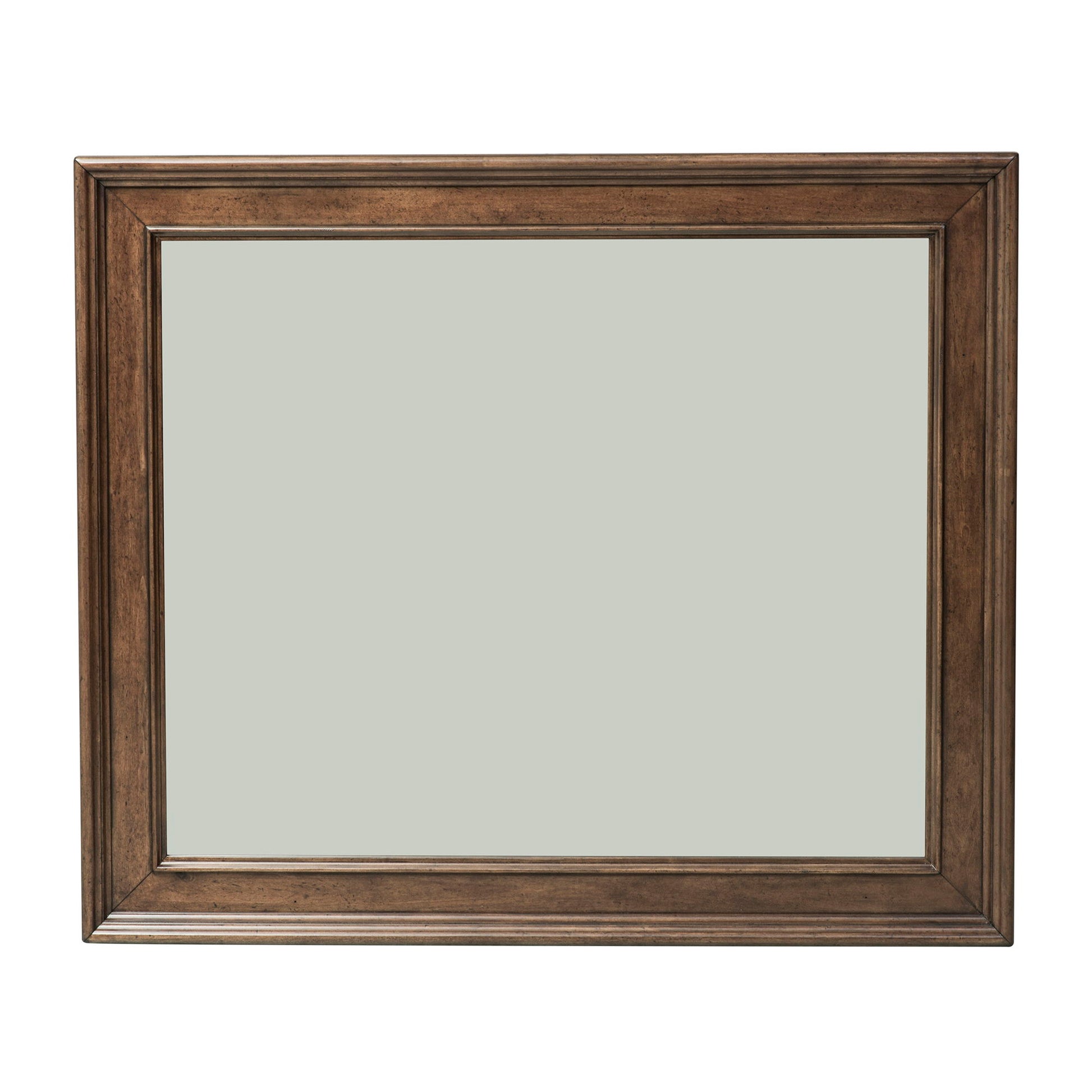 Design possibilities are endless with the Rustic Traditions dresser and mirror. Crafted of poplar solids and pin knotty cherry veneers, this kit features a rustic cherry finish, classic Louis Phillippe styling, chamfered pilasters, full extension drawers with felt lined top drawers, bun feet, and is accented with antique brass drop ring and key hardware. The dresser has eight drawers and can accommodate the landscape mirror with a beveled edge with the included bolt-on supports. Today’s traditional has a more casual feel and this is mostly achieved through well, worn, rustic finishes making the Rustic Traditions bedroom collection a timeless addition to your home.