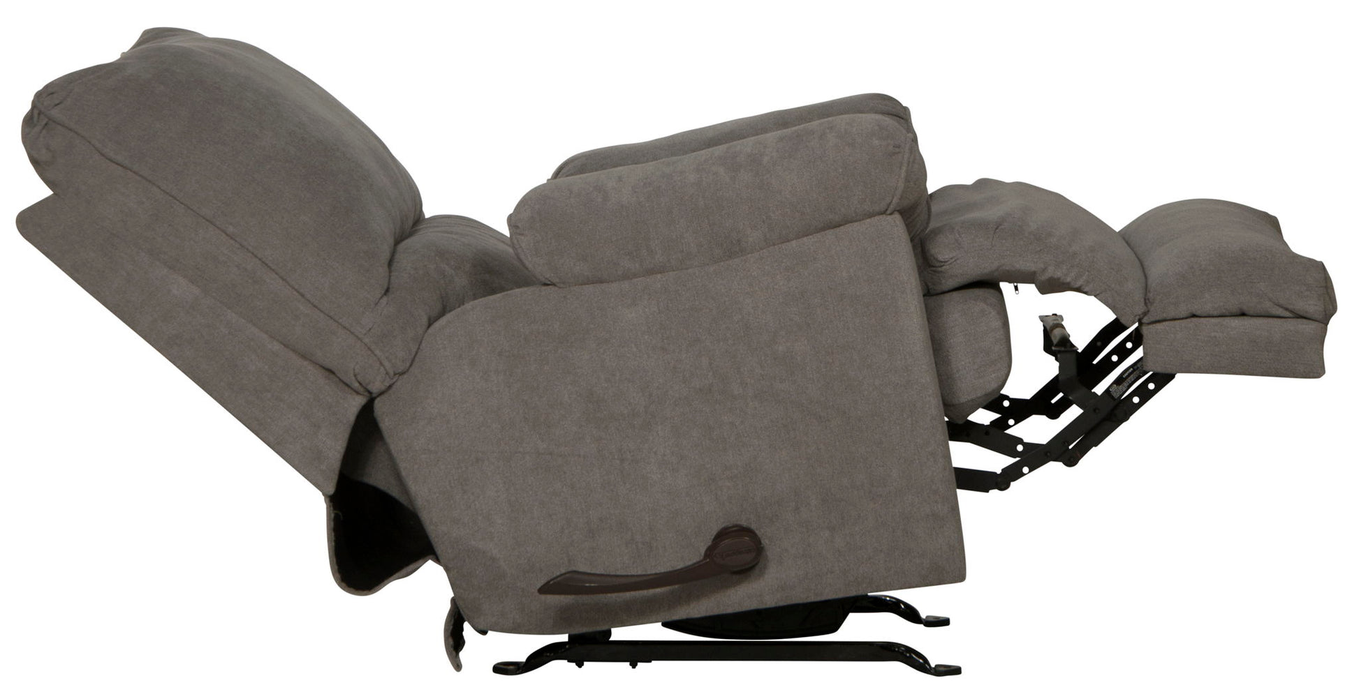 Relax in style with the Sadler rocker recliner. The Sadler rocker recliner features a seat constructed of individually pocketed coils encased in foam and topped with cool gel infused memory foam topper for maximum comfort. The Sadler reclines using our easy to open and close handle activated reclining mechanism for years of worry-free use. The backs and arm cushions are filled with resilient polyester fiber for just the right amount of support without sacrificing plush comfort. Covered in a durable 100% polyester fabric the Sadler wears well for everyday life.