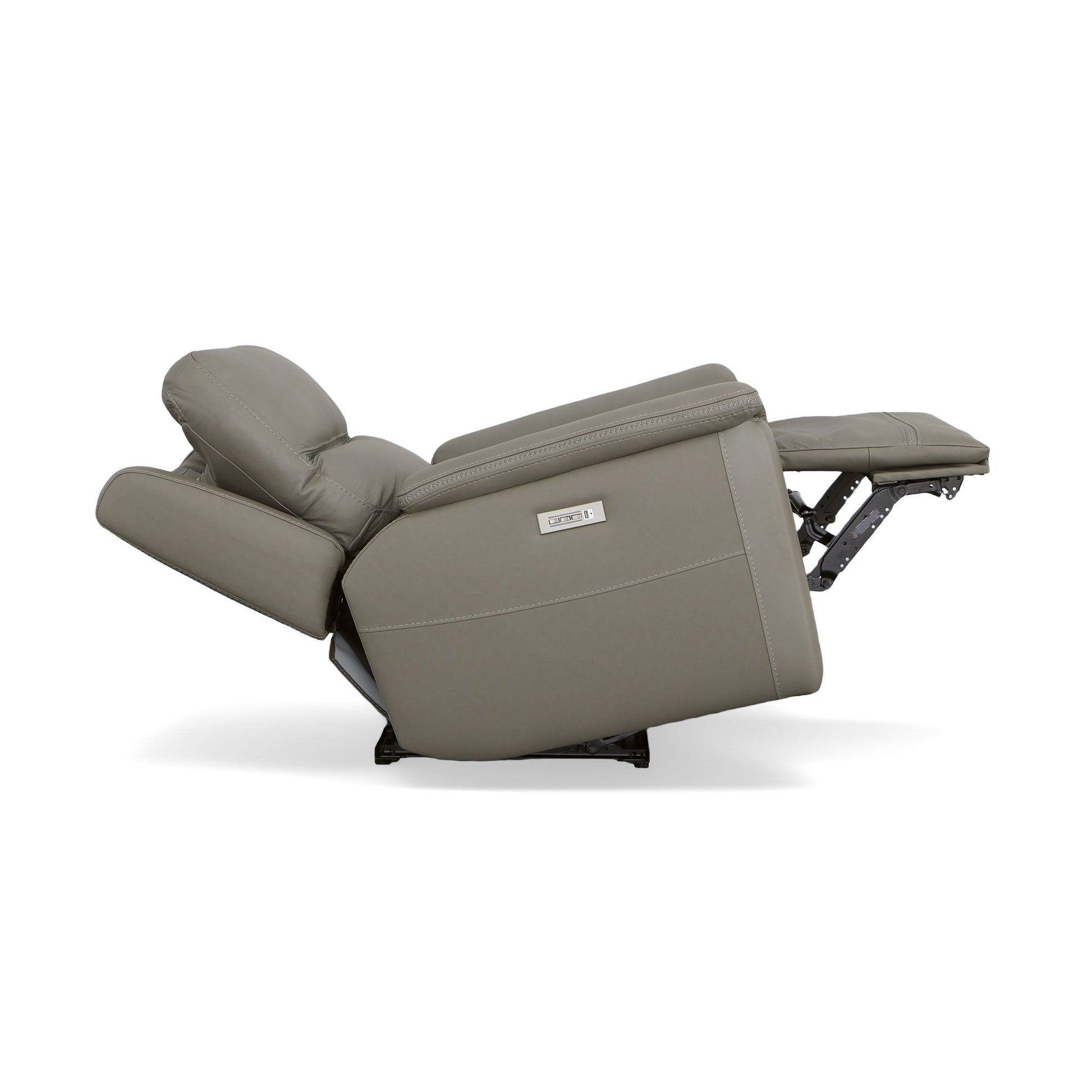 Transform your living space with the Sawyer power recliner with power headrest and lumbar, a perfect blend of comfort and style. This stunning design features high-quality, gray top grain leather upholstery with unique cross-stitching and a distinct arm silhouette, adding a sophisticated touch to any room. Customize your comfort with power recline, headrest and lumbar support at the touch of a button and experience Zero Gravity reclining, relieving pressure from your joints. Designed for durability and longevity, this recliner includes Flexsteel’s patented Blue Steel Spring™, providing unmatched seat comfort and durability that you can count on.