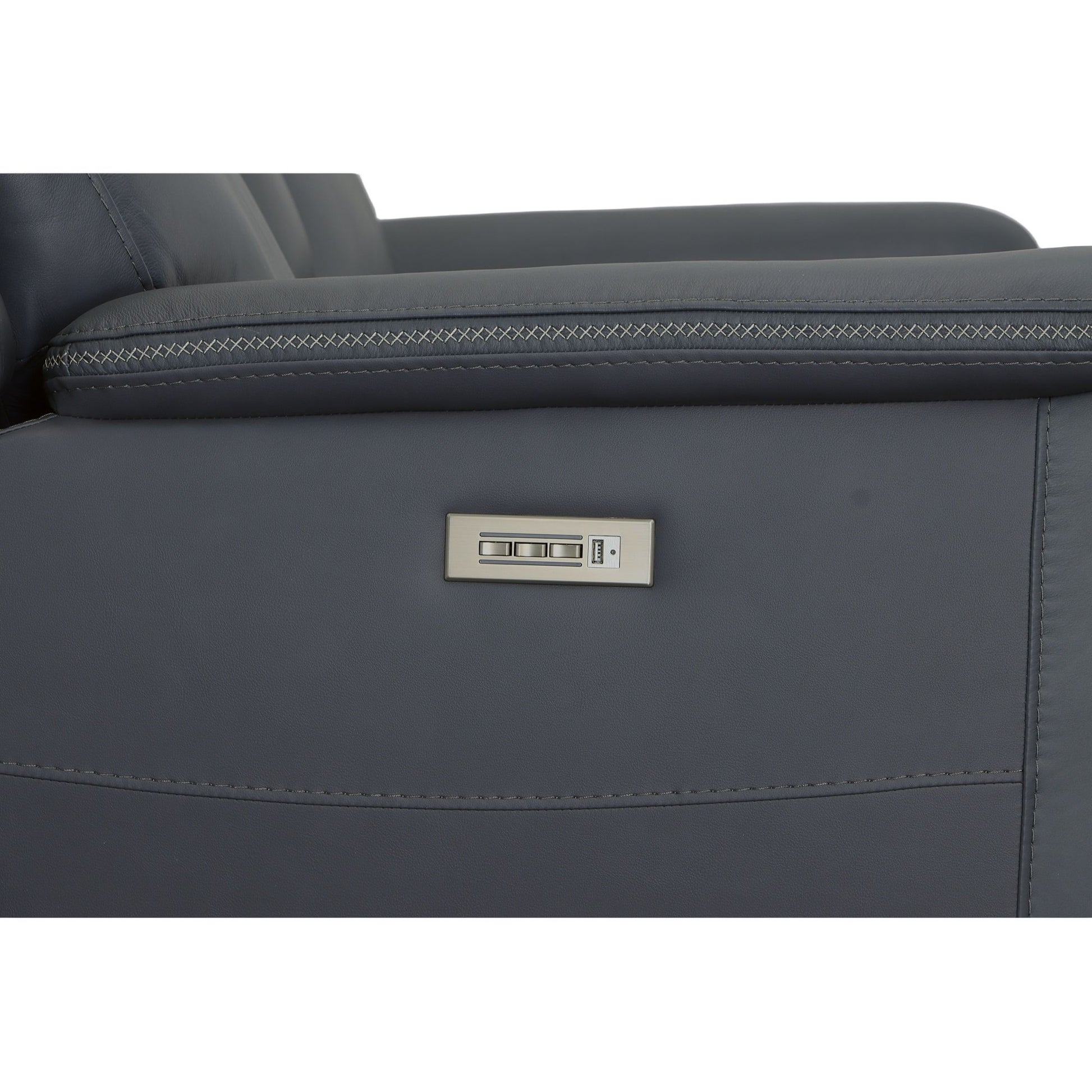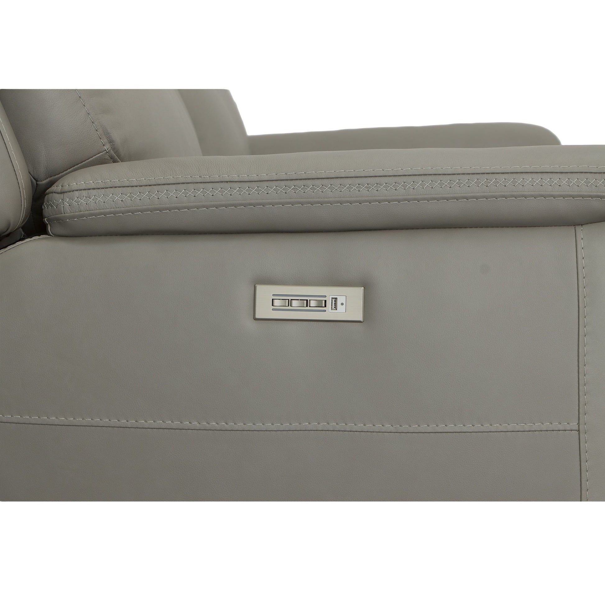 Transform your living space with the Sawyer power reclining loveseat with power headrests and lumbar, a perfect blend of comfort and style. This stunning design features high-quality, gray top grain leather upholstery with unique cross-stitching and a distinct arm silhouette, adding a sophisticated touch to any room. Customize your comfort with power recline, headrests and lumbar support at the touch of a button and experience Zero Gravity reclining, relieving pressure from your joints. The center console provides seat-side storage and a place to set your drinks. Designed for durability and longevity, this loveseat includes Flexsteel’s patented Blue Steel Spring™, providing unmatched seat comfort and durability that you can count on.