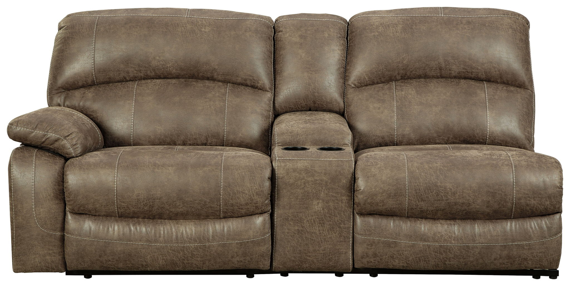 This left-arm facing power reclining sofa with console is made with faux leather. Pairs with other items in the series to make a sectional.