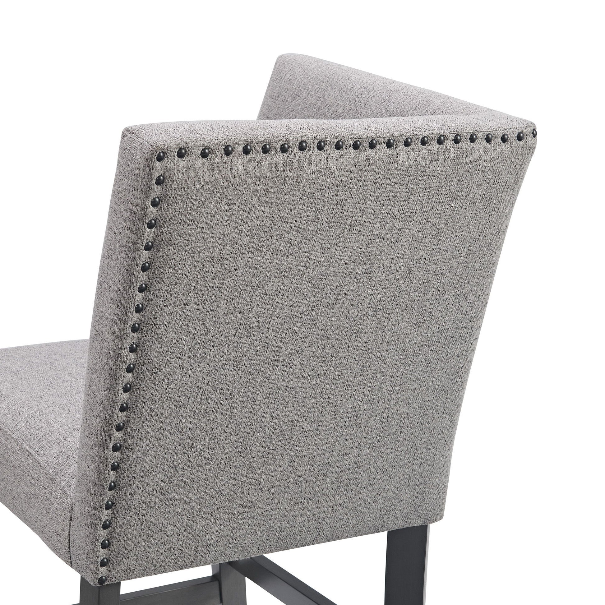 This beautiful and sophisticated dining set is your home's next hosting essential. The Seneca Counter Height Dining Set has a sleek square table design and also features a convenient built-in lazy Susan, allowing you to easily serve and share meals with family and friends. The table base shelf provides additional storage space for dinnerware or decor, keeping the dining area organized and clutter-free. The upholstered chairs are designed for maximum comfort with foam-filled seats and backs that make every meal feel like a luxurious experience. To add an extra touch of elegance, the seat backs are adorned with nailhead trim, a subtle detail that elevates the overall look. The Seneca Counter Height Dining Set has everything you need for a stylish and comfortable dining experience.
