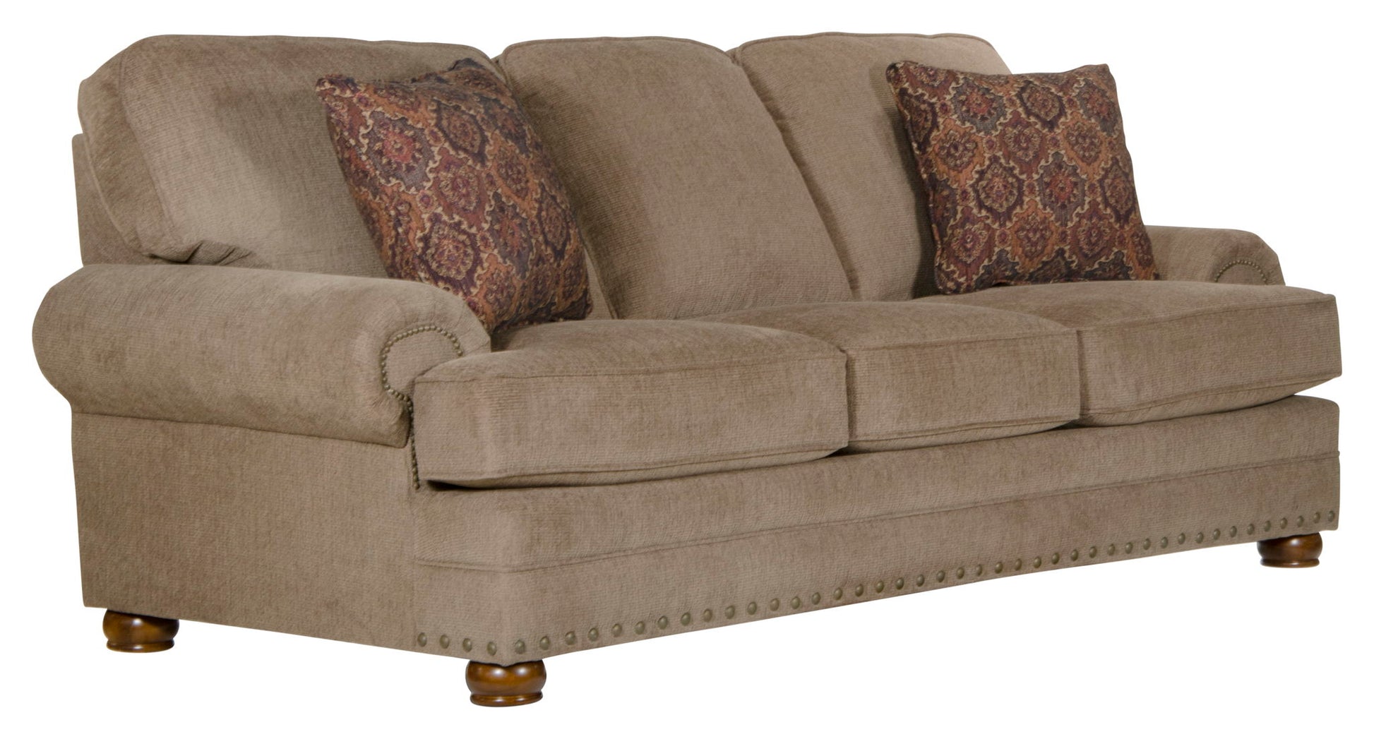 SINGLETARY is a Classic Traditional design in a soft chenille with turned wooden leg and decorative nail accent details.
