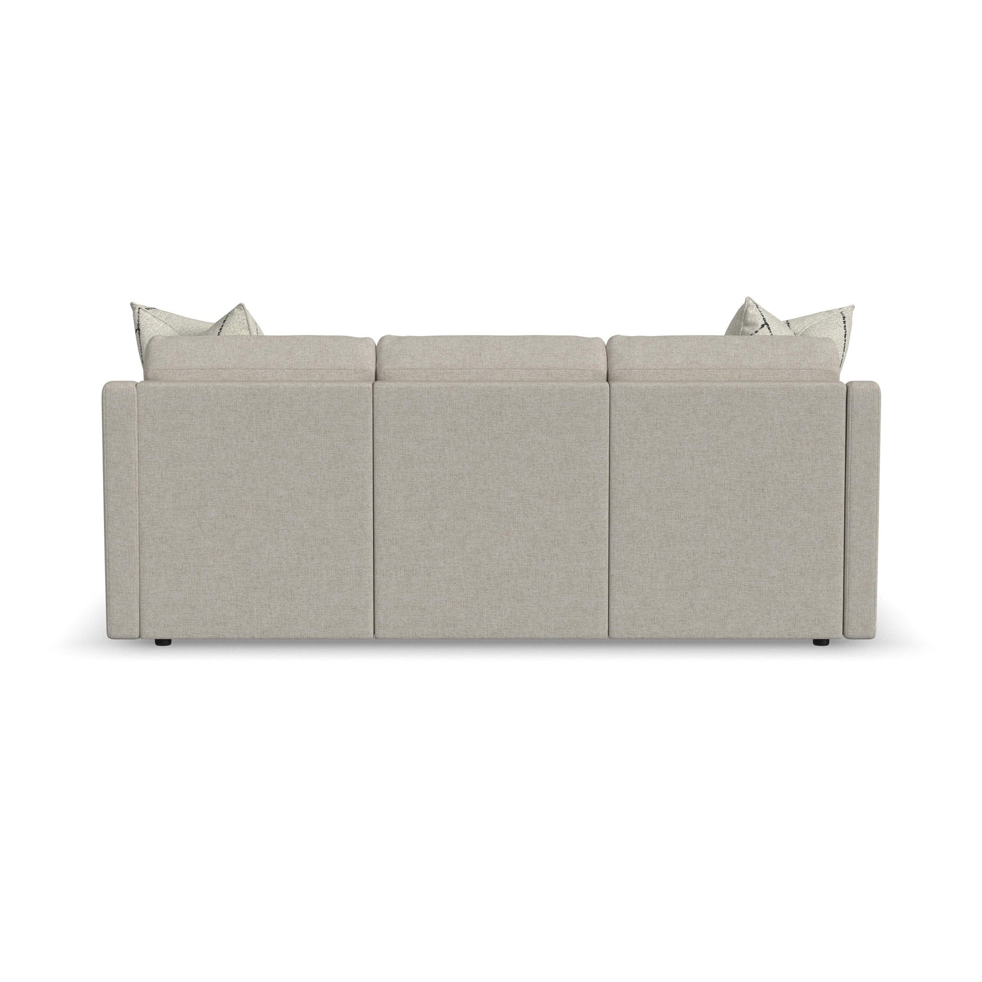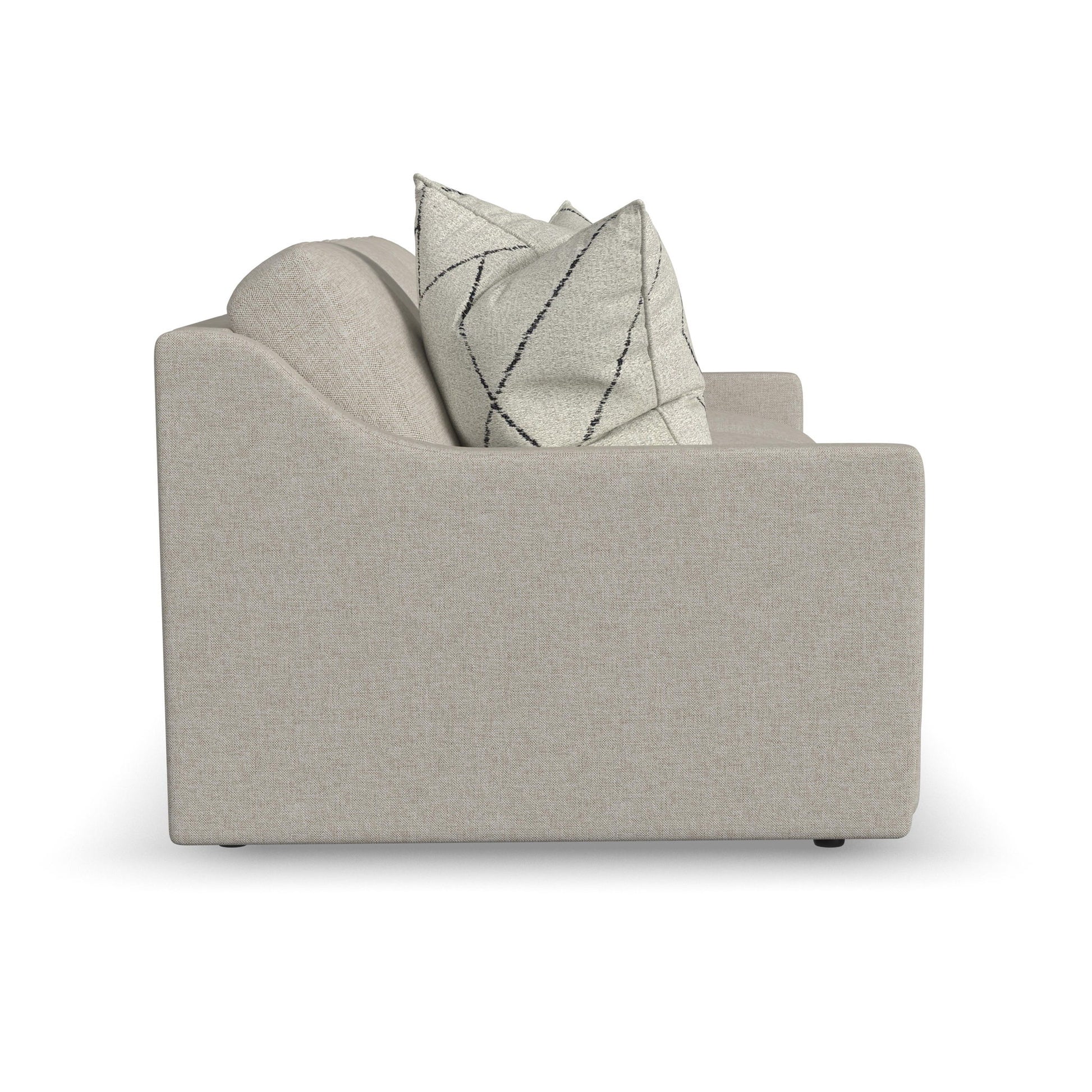 - A contemporary silhouette with soft, sloped arms and recessed legs