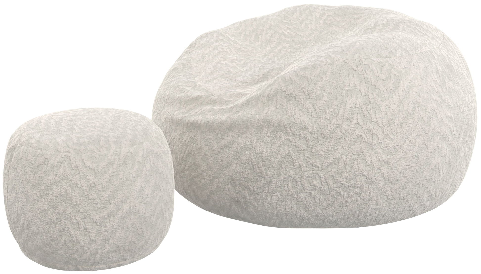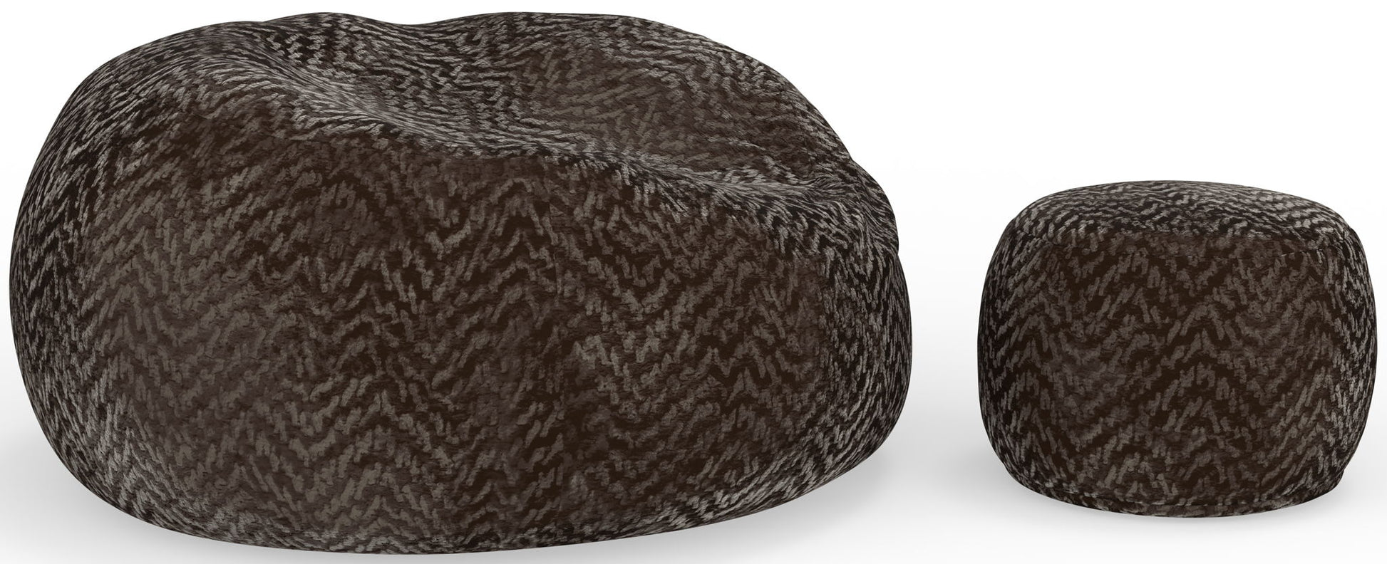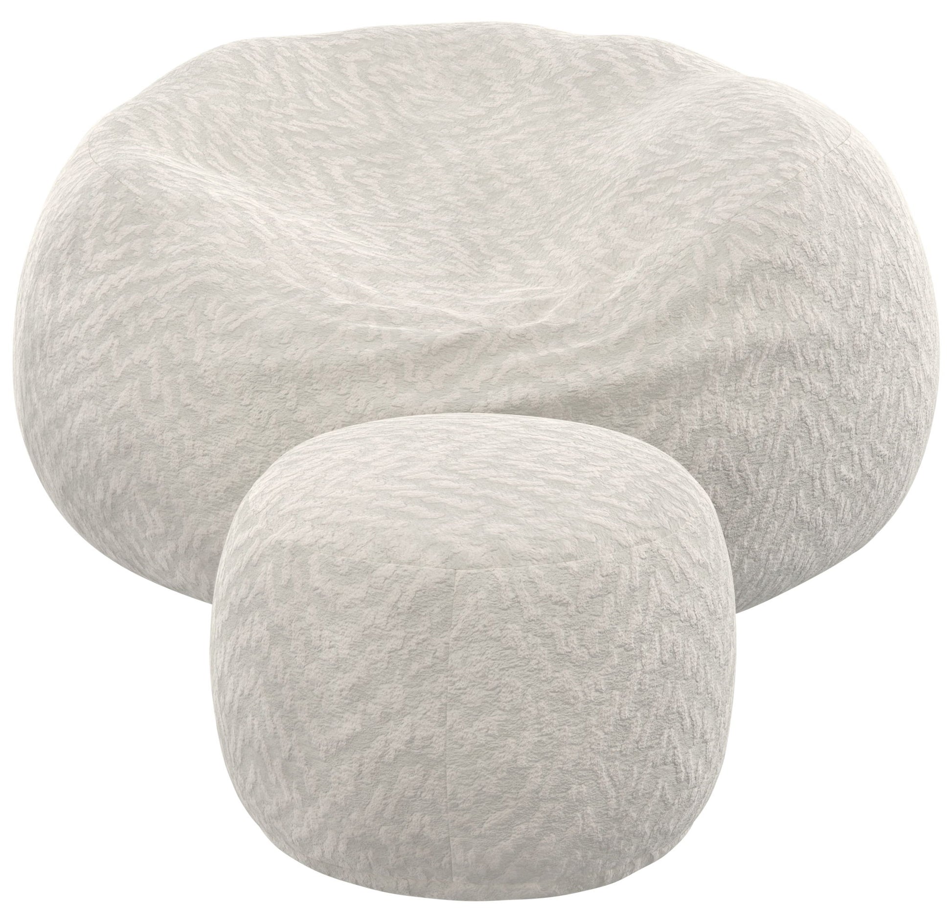 Comfort Sack and Footstool available in three colors: Chocolate, Parchment, and Grey.