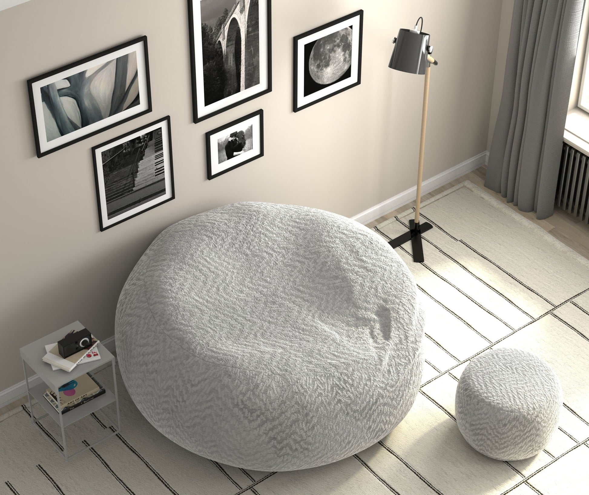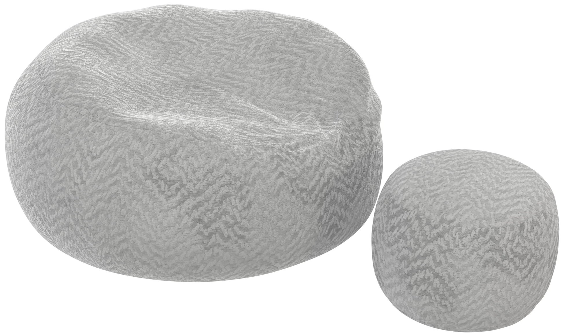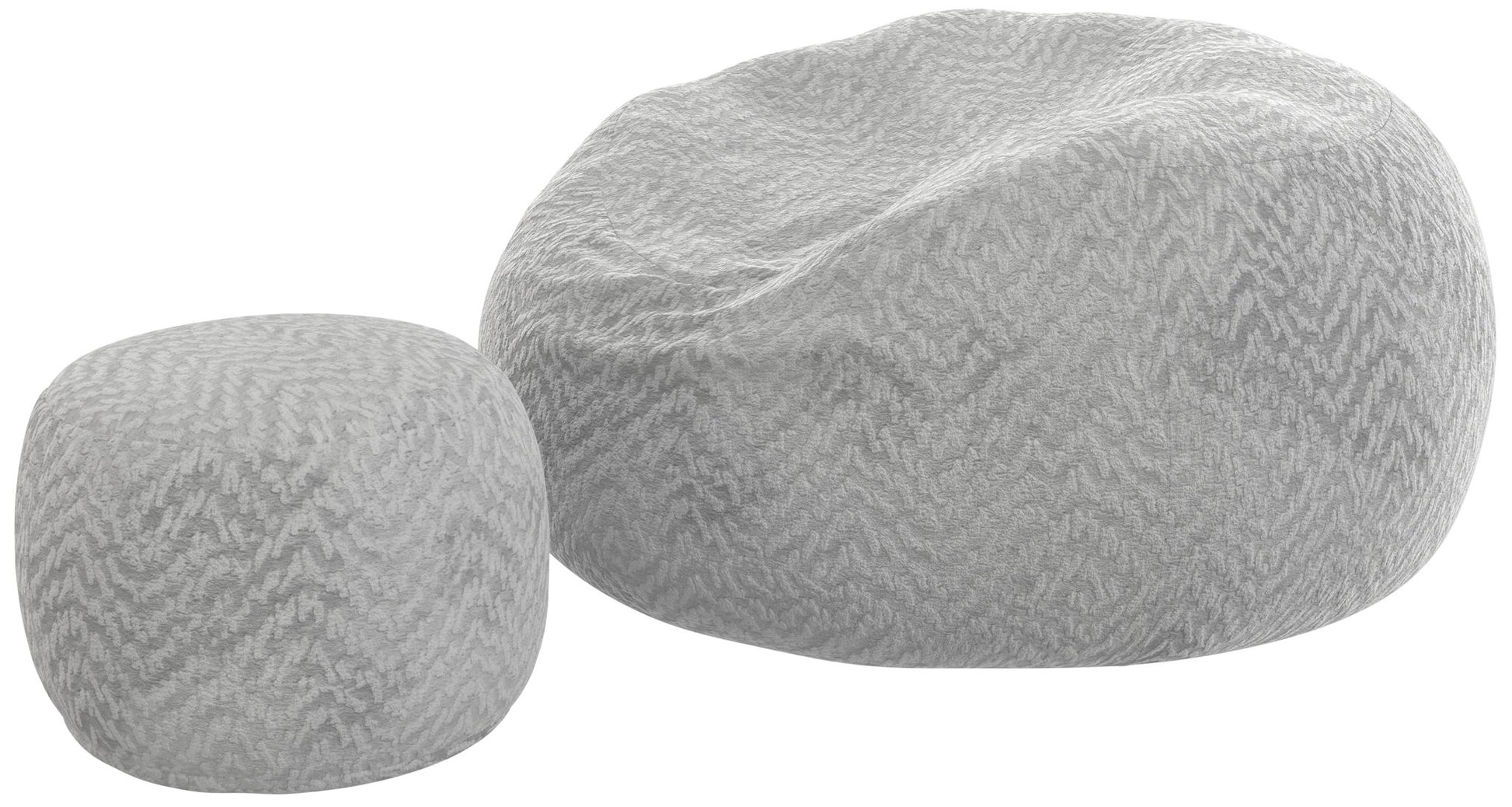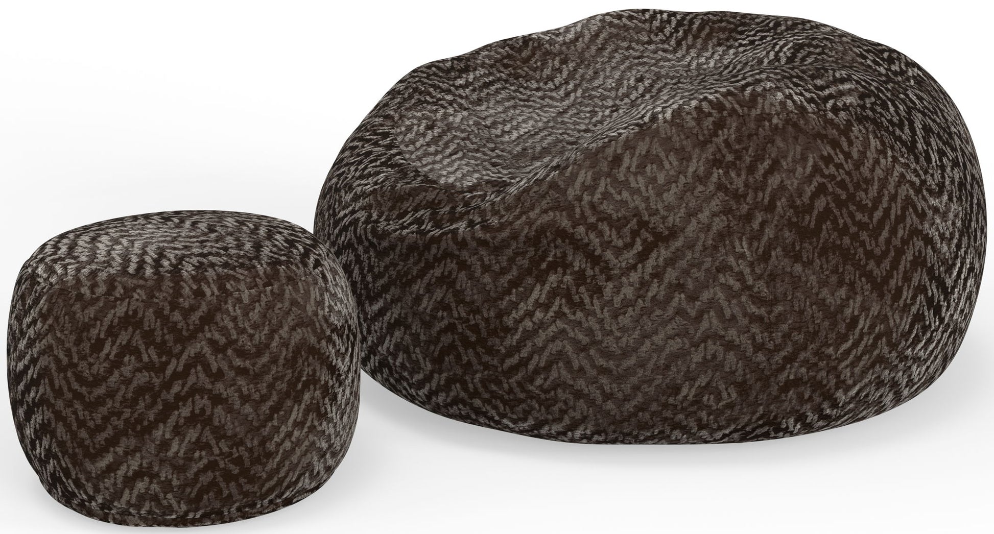 Comfort Sack and Footstool available in three colors: Chocolate, Parchment, and Grey.