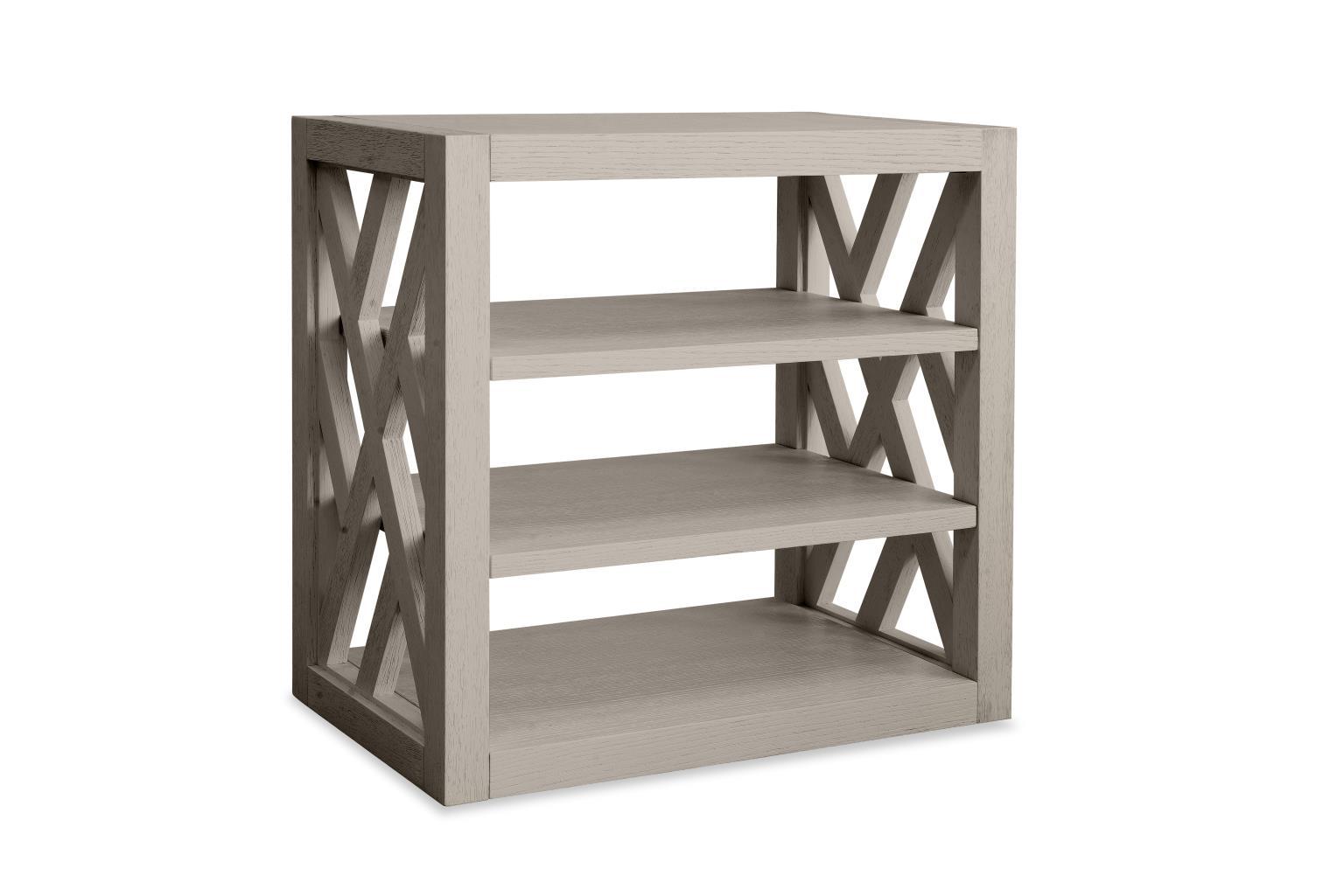 Updated coastal point-of-view can be used by the beach down the shore at the lake or wherever your Staycation takes you. Quartered White Oak takes on dramatically different feels depending on which of the finishes you choose. Painted linen drawer fronts and accents add texture and are also used as backing and under fretwork. Clean contemporary brushed nickel hardware nicely offsets the natural finish tones of Haven and Driftwood. Box-on-stand design adds unique depth and dimension to the cases. Beautiful Chippendale inspiration is evident across the fretwork.