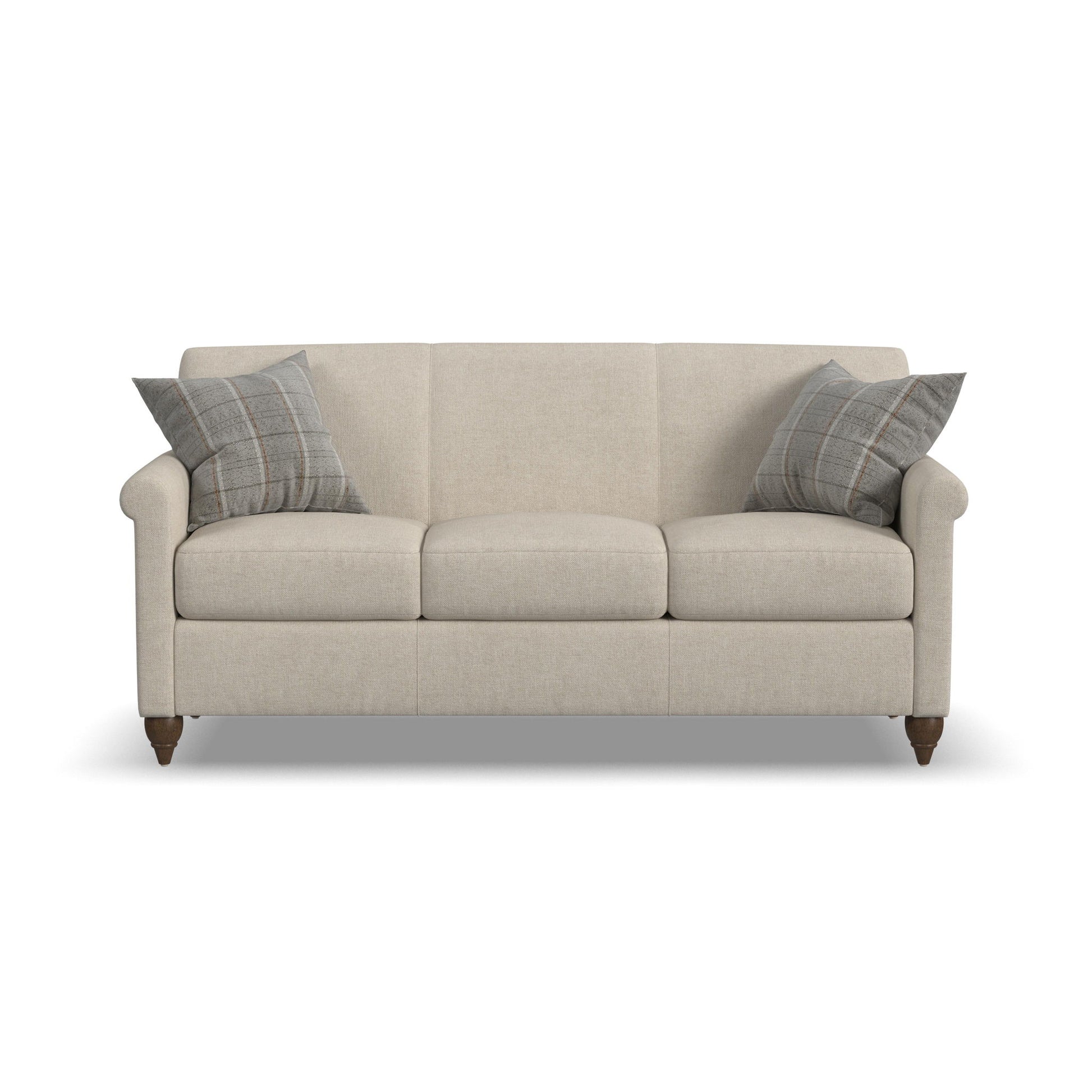 Whimsical elegance. The perfect elegant piece to accentuate your home, the picturesque petite roll arms of the Stella sofa invite you in. Take a seat atop removable and reversible cushions that are supported by our patented Blue Steel Spring system – backed by our lifetime guarantee. Handcrafted with a durable frame and upholstered with careful detail, Stella is designed to last. The tight back and turned wood legs give this quaint sofa a modern flair. And with two accent pillows in your choice of fabric, elevate your home with the chic style of Stella.
