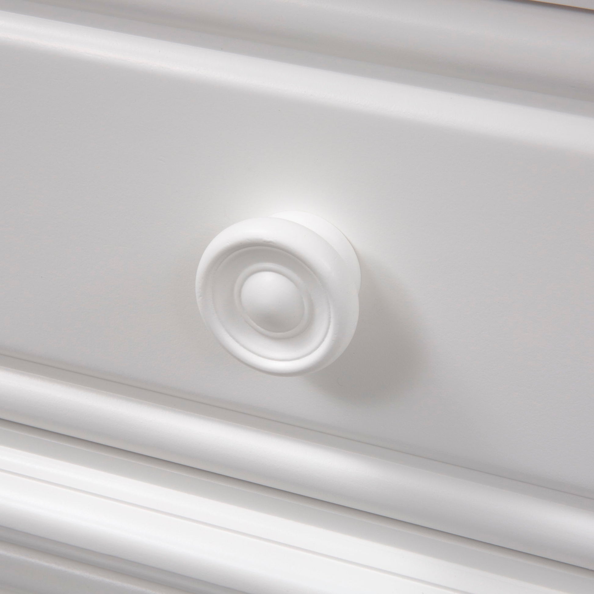 Obtain a fashionable cottage look with the Summer House 6 drawer dresser. Crafted of pine solids with painted MDF, this piece features bottom case dust proofing, full extension drawer glides for easy access to storage, fully stained interior drawers, felt lined top drawers, and is accented by wooden knob hardware.