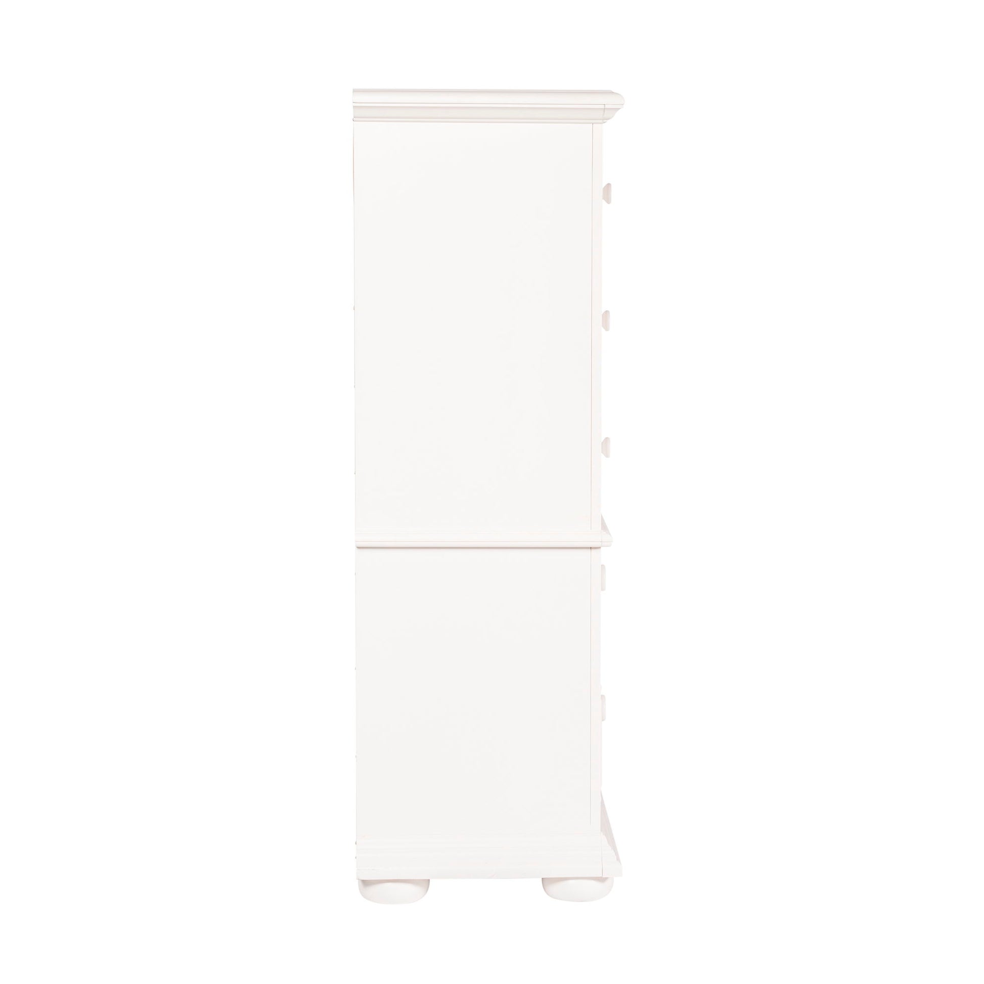 Lighten up any bedroom with the Summer House lingerie chest where all the best elements of cottage design are captured in a single piece. Crafted with poplar and pine solids, this chest features bottom case dust proofing, felt lined top drawers, and fully stained interior drawers. The oyster white finish accompanied by wooden knob hardware offers an unmatched cottage feel to any space.