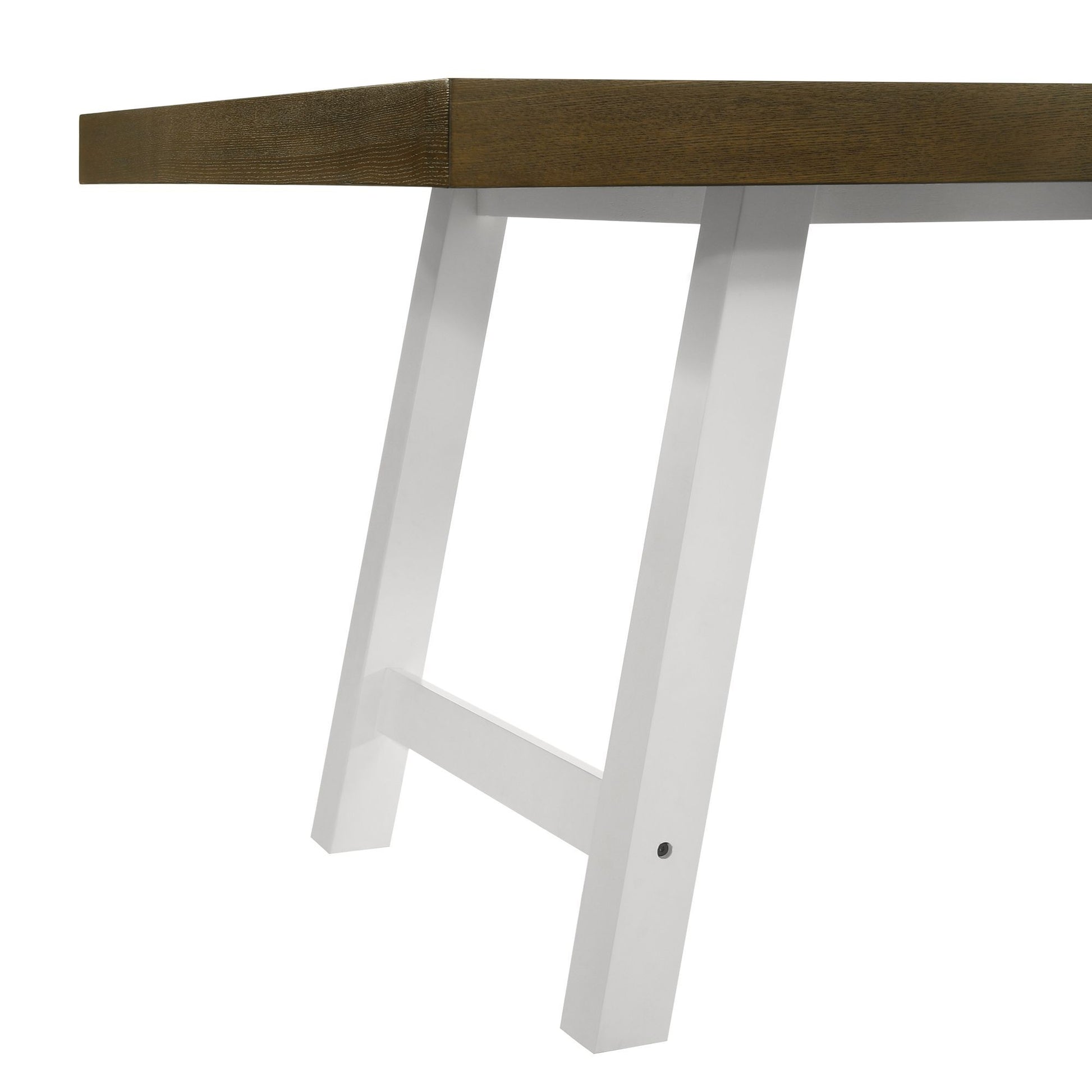 The Summerville 6PC Dining Set is a charming addition to any dining room. This set includes a standard dining height table, four chairs, and a bench, providing plenty of seating for family and guests. The two-tone dining table in oak and antique white adds a rustic touch to the room. The X-back chair design and stretchers for added stability bring a farmhouse feel to the set. Constructed of MDF with an ash veneer, this set is built to last. The foam cushion upholstered seats add comfort and style to this beautiful dining set.