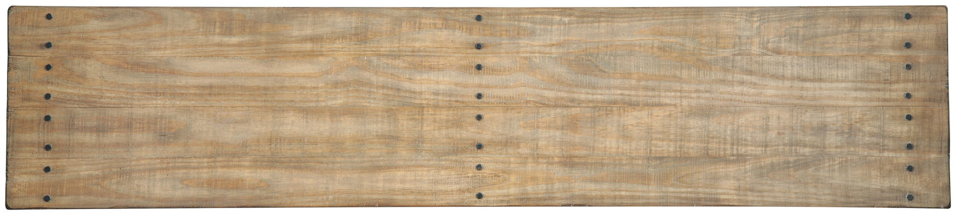 As this console table proves, sometimes less is more. Dramatically transform your living space with the warm and rustic appeal of solid wood construction and open-slat shelving. Washed in a light brown finish, this sofa table sets a new standard for down-to-earth refinement.