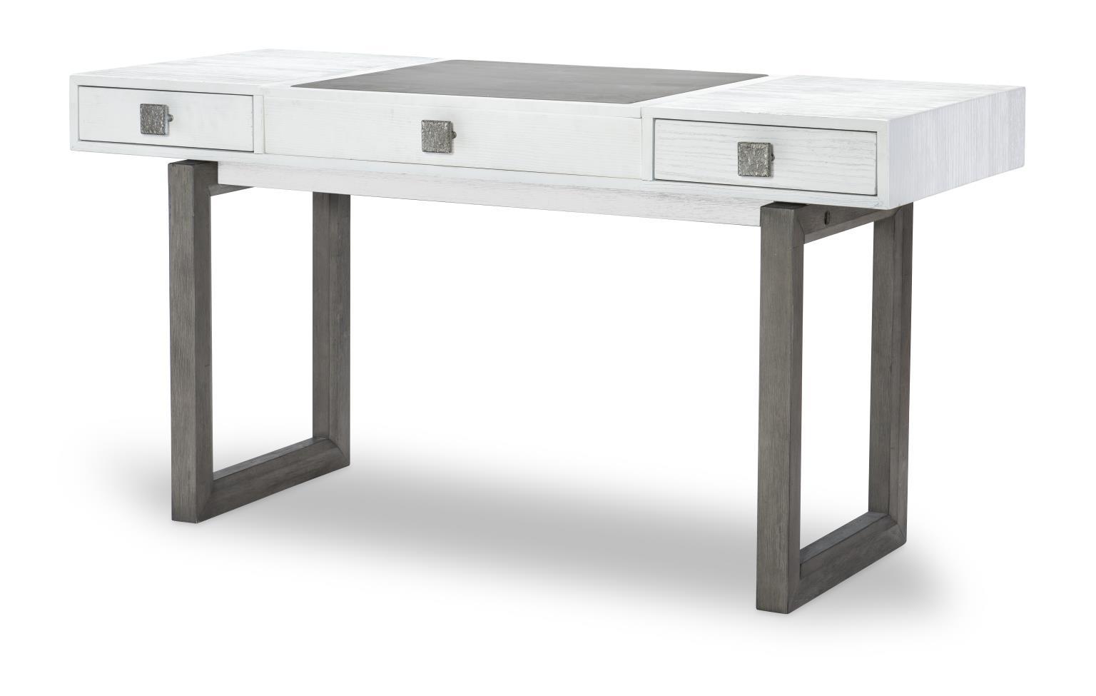 Angular modern shapes,, organic textures and mixed materials combine with a gray,, cream,, and metallic color palette to create a crisp modern look in the Terra Luna whole home furniture collection. The deeply wire-brushed Nightfall finish gives a tactile,, dimensional texture,, contrasting with the White Cloud case fronts and upholstery and metallic-finished table and chair bases. Over scaled,, jewelry-like Polished Nickel hardware adds a glam touch. The clean silhouettes paired with natural color tones and organic textures give a minimalist yet inviting appeal.