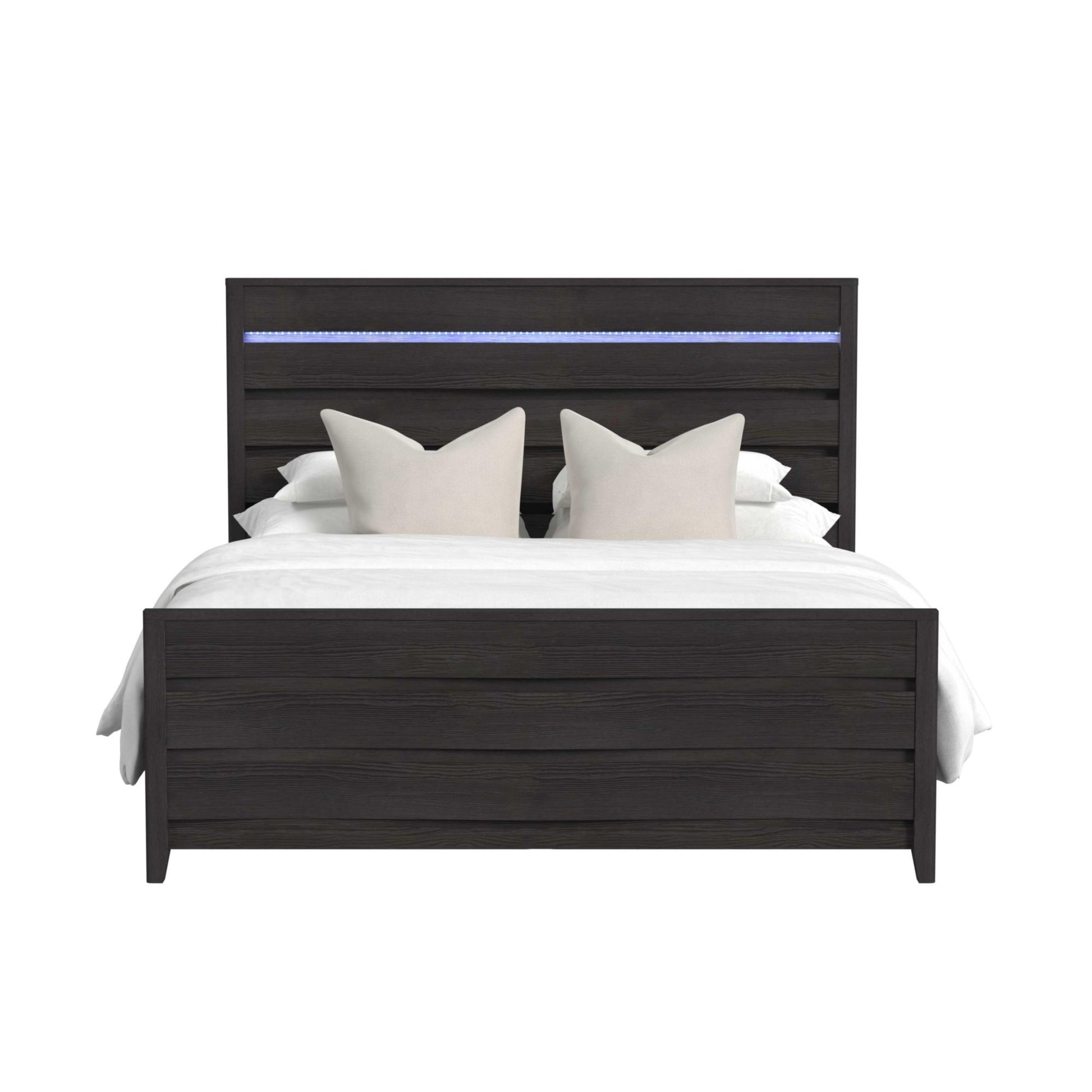 The Tobias Bed with LED is a sleek and modern addition to your home. Designed with gently sloping horizontal slats that create a uniquely rhythmic balance, this piece adds a sense of refinement to any space it occupies. Conveniently integrated LED lighting in the headboard adds modern flair, while slightly beveled legs provide a firm and reliable foundation. For a piece that is sleek and stylish, the Tobias Bed with LED delivers in quality and design.