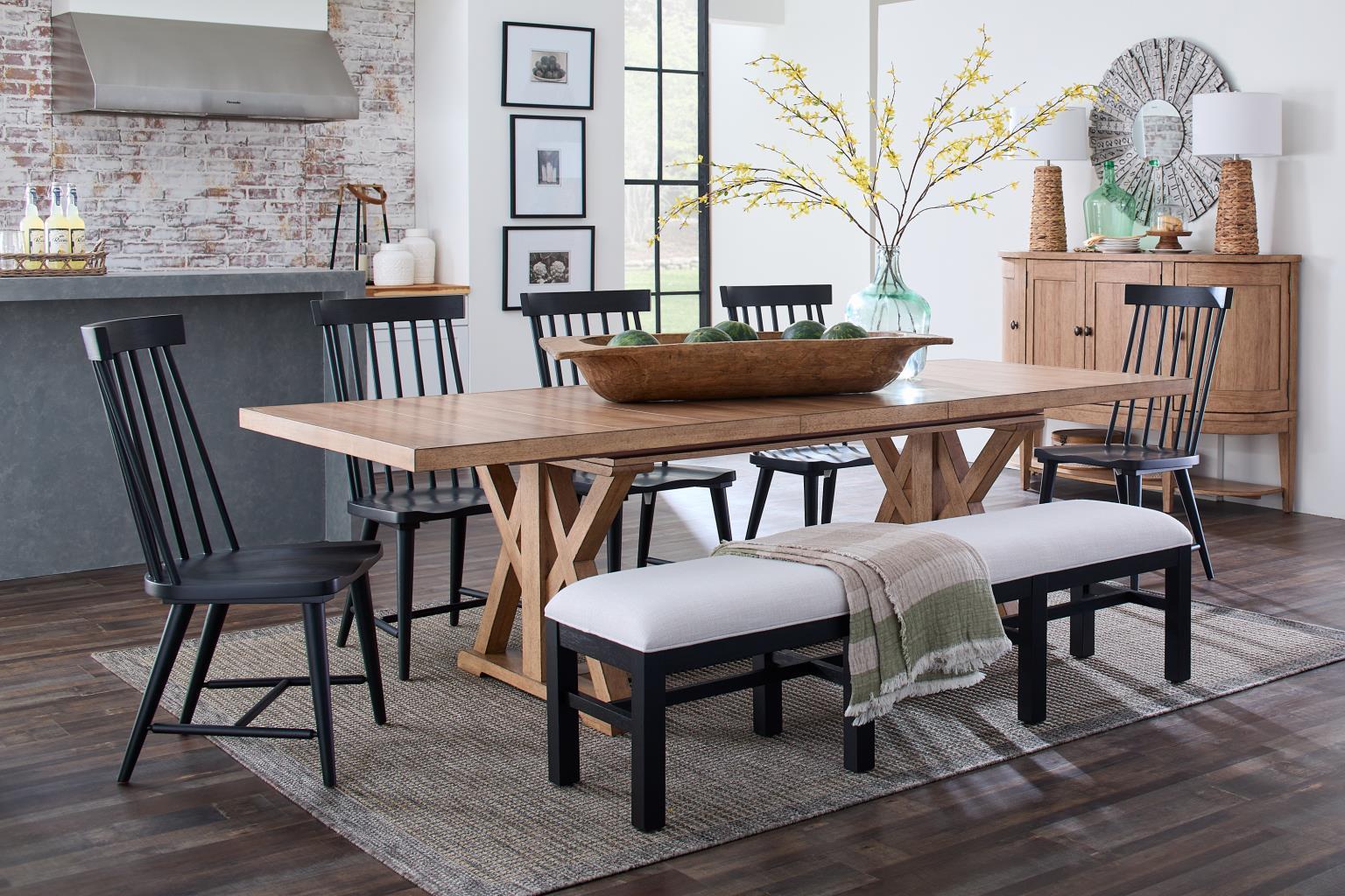 Today's Traditions by Trisha Yearwood features two distinct finishes to accompany oiled bronze hardware. The style of the collection is updated traditional with a nod to historical Shaker influences. The upper case of the pieces has slight banding to give dimension and eye appeal and the legs are tapered. The collection also features random board selection for a vintage feel and soft distressing to give a "generational" appearance. Overall this collection combines traditional design elements and modern touches with a vintage feel to create a unique and stylish look.