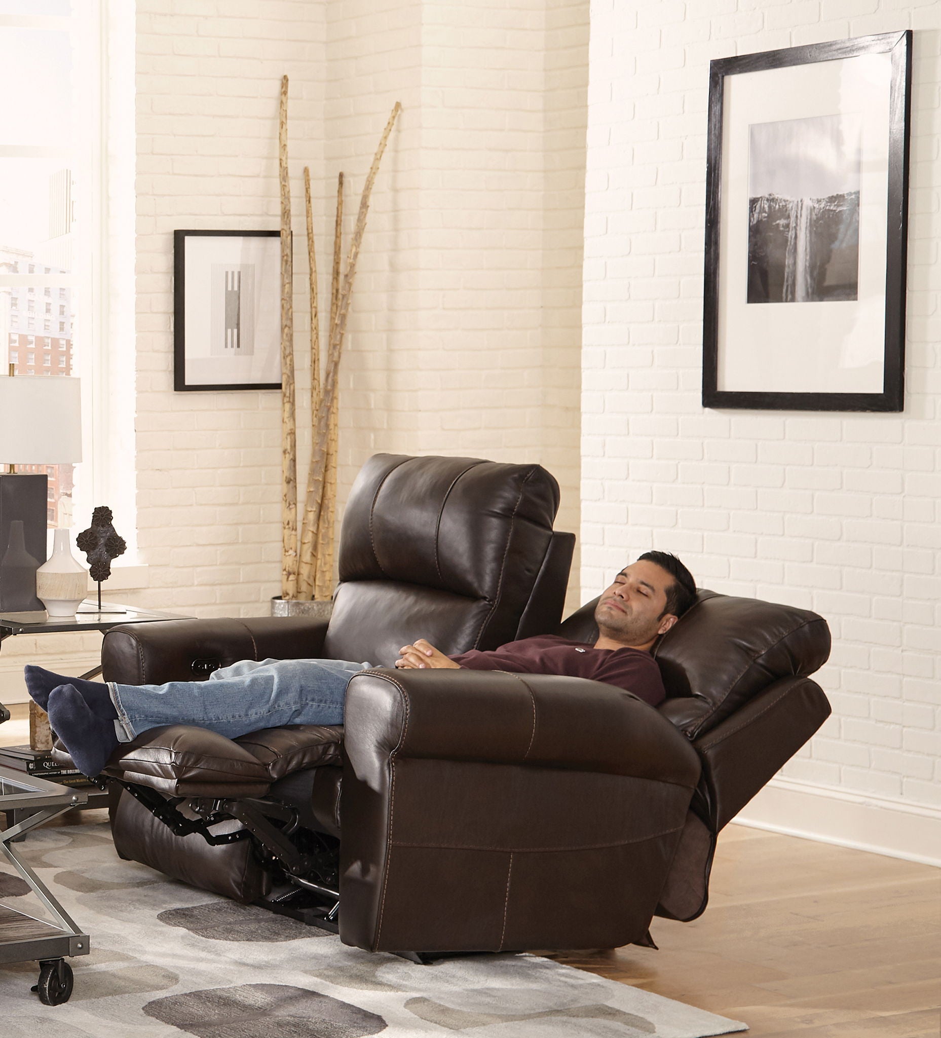 TORRETTA features luxurious genuine top grain Italian Leather in a Greek Key arm design. Power Recline is standard on all pieces and includes a USB Charging Port on control buttons.