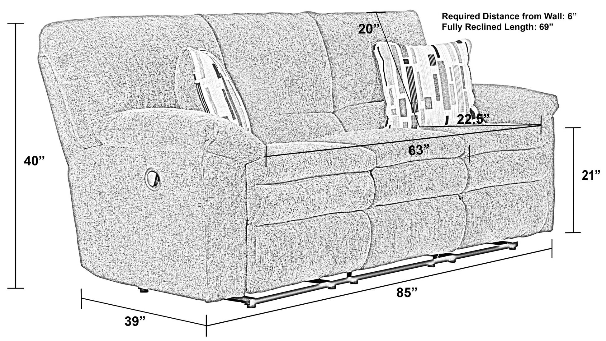 Relax in style with the Tosh 3 seat, dual power reclining sofa. The Tosh reclining sofa features seats with individually pocketed coils encased in foam and topped with cool gel memory foam topper for maximum comfort. Each end reclines using our easy to open and close heavy duty recliner mechanisms for years of worry free use. The backs and arm cushions are filled with resilient polyester fiber for just the right amount of support without sacrificing plush comfort. Covered in a durable 100% polyester chenille fabric the Tosh reclining sofa wears well for everyday life. Style was not sacrificed for comfort in this sofa. The Tosh boasts 2 fashion accent toss pillows to make this sofa an attractive addition to any room.