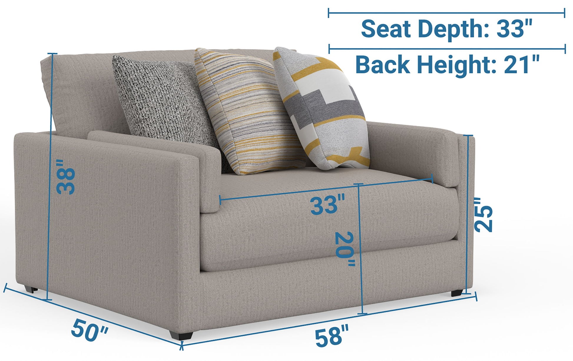58.0"W x 38.0"D x 50.0"H - 130.0 lb