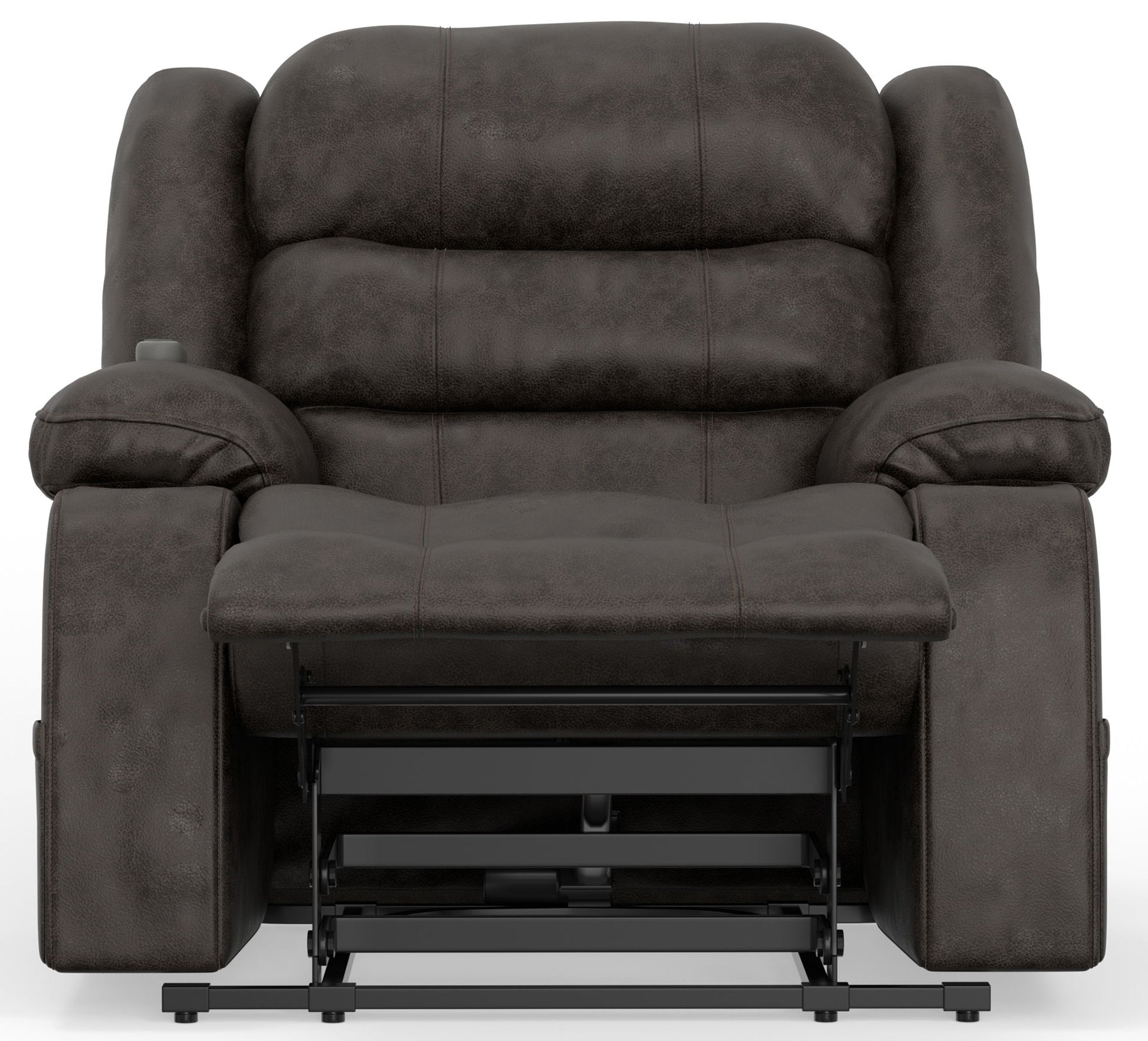 Tucker is a large scale Power Lift Chair with a tall waterfall back, comfortable automotive seat, and convenient dual cupholders. Available in a cool Steel grey faux leather fabric.